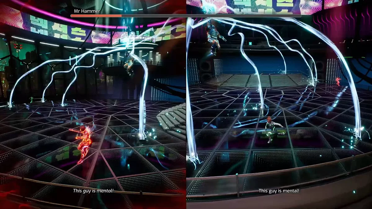 Сперва противник выпускает несколько энергетических зарядов, затем бросает на землю свой молот: второй игрок должен отвлекать его, пока первый атакует молот на полу, чтобы сбить с него барьер. Как только это произойдёт, второй игрок при помощи своей способности хватает молот и наносит несколько ударов мистеру Хаммеру его же оружием. При этом первый персонаж также может атаковать врага обычными ударами, хотя они будут не так эффективны.