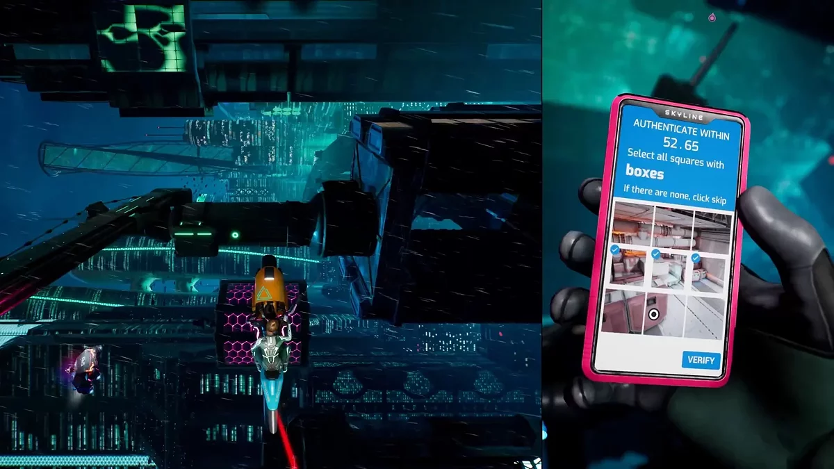 Когда доберётесь до крыши, на которой вы можете найти биотуалеты. По сюжету вам нужно забраться в один из них, чтобы напарник бросил объект через воздушную дорогу к зданию напротив. Однако так вы пропустите побочное задание. Вместо этого хватайте биотуалет и бросайте на крышу высокого здания неподалёку. Игрок внутри туалета сбрасывает лестницу и вместе вы отправляетесь в необязательное приключение.