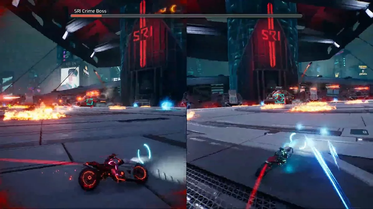 Далее стартует очередной уровень с погоней. Первый игрок должен управлять мотоциклом, правильно выбирать маршруты и вовремя использовать гравитационные платформы. Второй геймер во время погони может хватать любые предметы и врагов. Ближе к финалу у Зои появится возможность предотвратить взрыв байка, однако сделать это не удастся: на экране смартфона будет появляться капча, звонки и другие препятствия. Когда персонажи обзаведутся отдельными мотоциклами, продолжайте следовать вперёд, попутно уничтожая противников в воздухе.