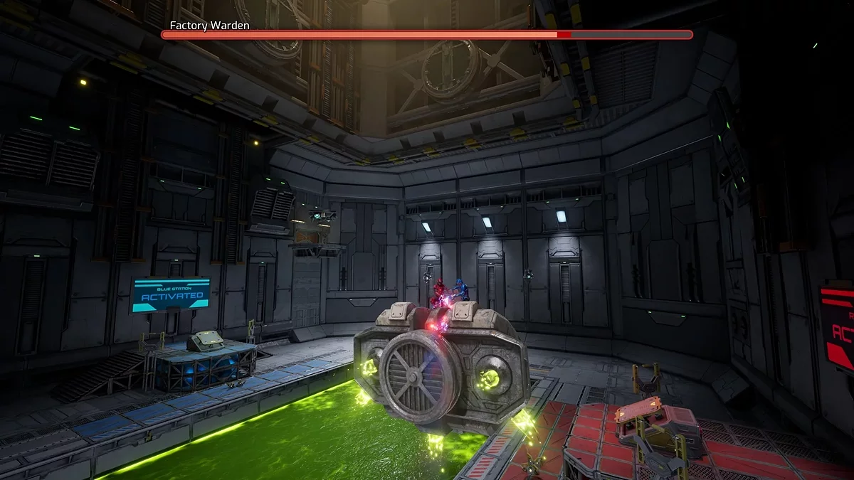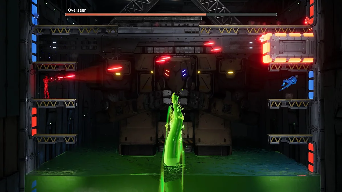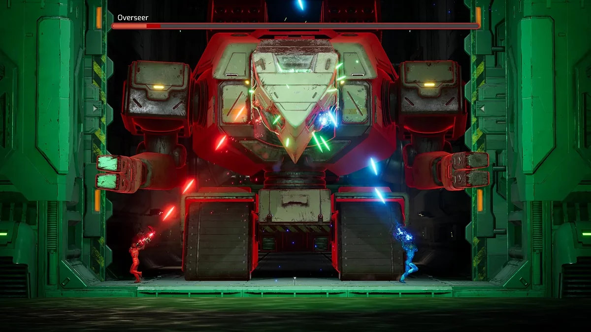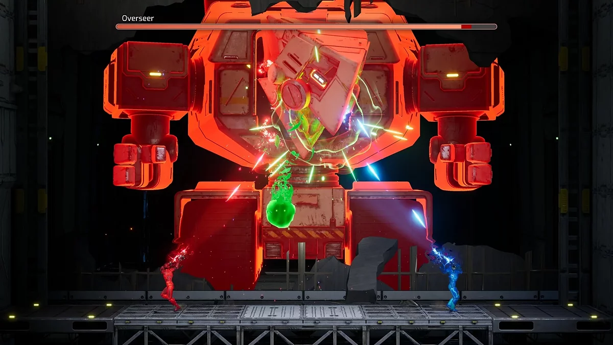 Уничтожив первую форму босса, на арене появится его улучшенная версия с механическими щупальцами. Уязвимые места врага — его механические лапы, сосредоточьте огонь по ним. Как только машина лишится конечностей, она упадёт на арену. Используйте трамплины, которые помогут подняться выше и атаковать врага. Достаточно провести несколько атак, чтобы босс восстановился и снова встал на лапы.