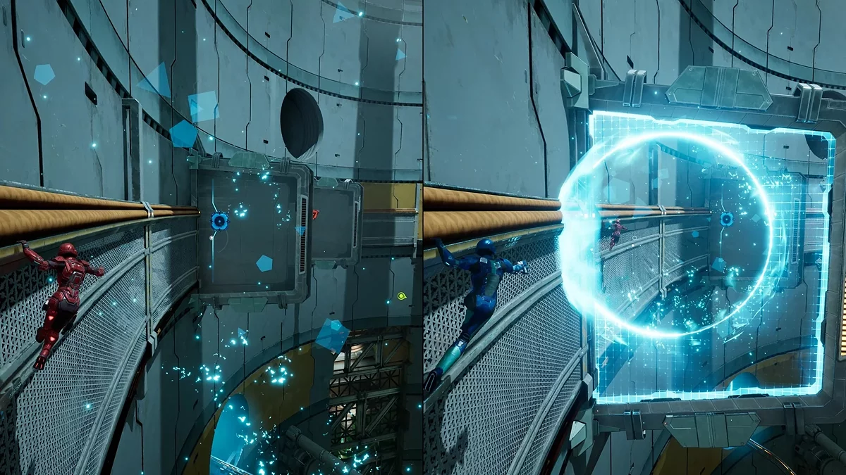 Когда геймеры воссоединятся, второй персонаж хватает сферу в стекло позади него, открывая доступ к грави платформе. Напарник поднимается и сбрасывает лестницу для второго игрока.