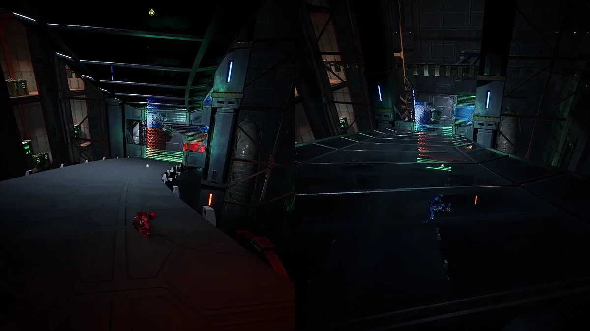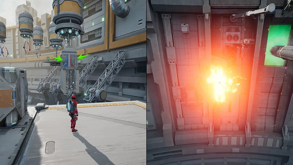 Перебравшись, второй игрок открывает ящиком доступ к гравитационной платформе, чтобы приятель добрался до кабины грузовика и смог управлять транспортом. Переместите трак ближе к напарнику — он заберётся по лестнице на крышу и откроет проход. Выбирайтесь из грузовика, используйте грави платформу и бегите за приятелем внутрь.