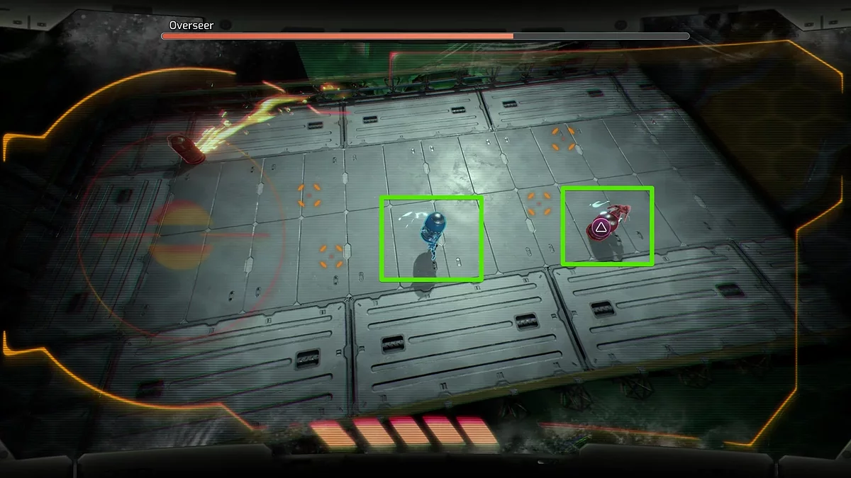 Когда у противника останется около половины здоровья, первый персонаж сможет забраться прямо внутрь сферы и попытаться захватить ядро, чтобы сделать уязвимым босса с внешней стороны. Игрок, управляющий Зои, в это время должен использовать свою способность и захватывать появляющиеся на сфере зеленые объекты. Когда два таких объекта будут уничтожены, первый персонаж направляется к ядру и уничтожает его.