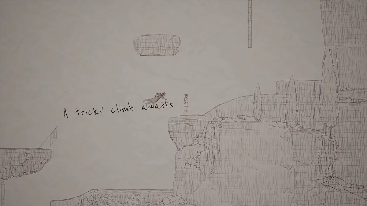 В этой истории вам всего лишь нужно перебираться по конечностям огромных людей, а также по доступным зацепам и уступам на скалах. Особо никаких загадок вы здесь не встретите. Оказавшись рядом с мужчиной с топором, подождите, пока он сделает замах, затем цепляйтесь за топор. Ещё чуть позже, выбравшись из водоёма при помощи удочки, вы вернётесь к прохождению основного сюжета.