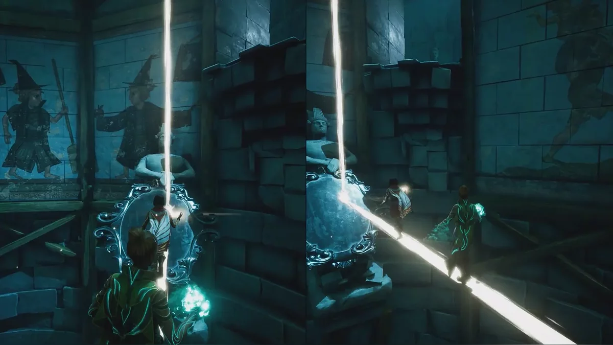 Теперь сначала Зои притягивает золотую сферу, а напарник отправляет к ней сову и активирует свет. Когда оба игрока окажутся сверху, Зои отпускает сферу обратно — так вы подниметесь выше, как на импровизированном лифте.