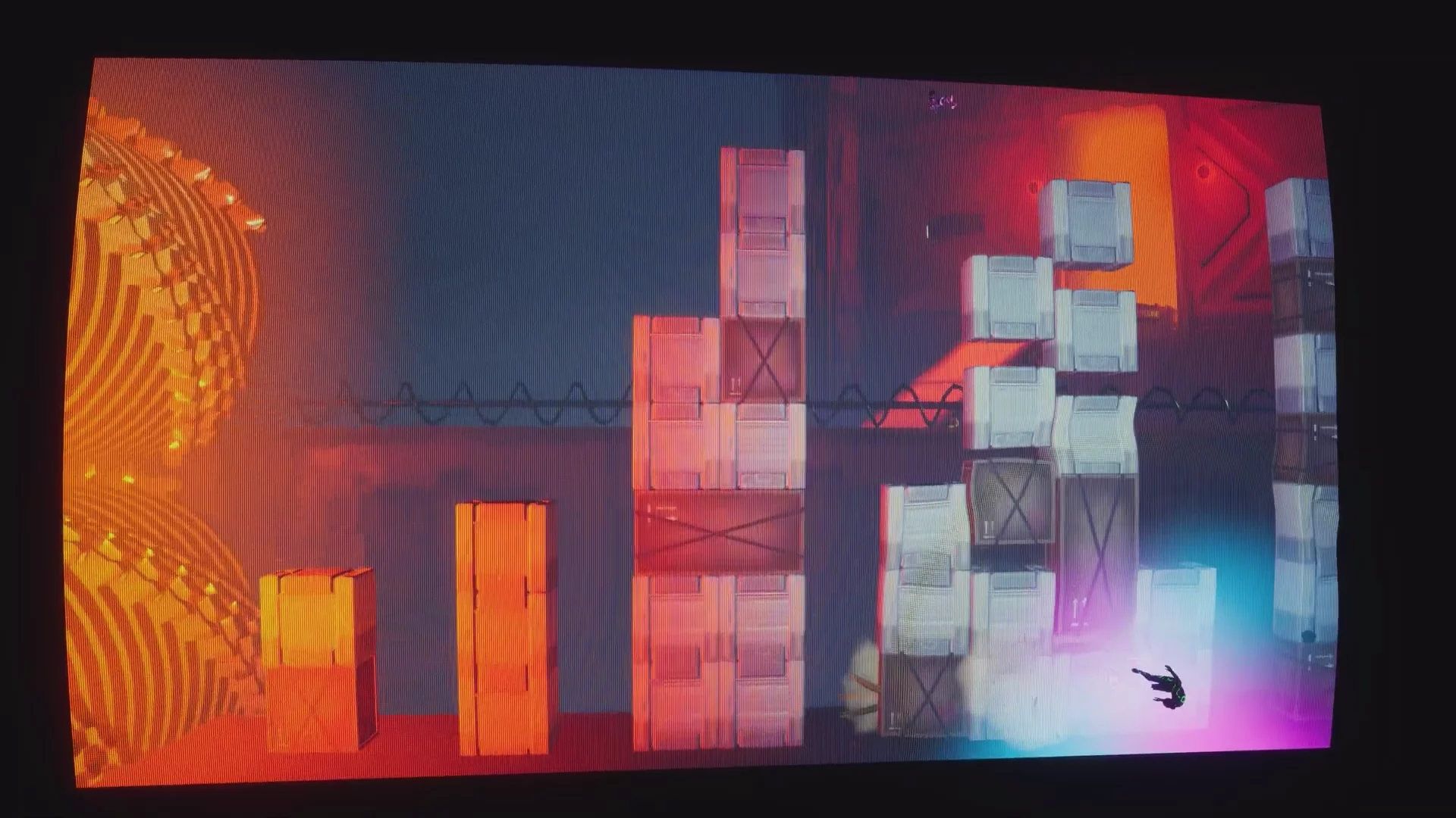 Следующий участок проще: Зои нужно раздавить три платформы на экране. Каждая раздавленная платформа раскрывает новую поверхность внутри телевизора, по которой Мио может перепрыгнуть через опасный участок. Когда все три будут уничтожены, Мио сможет безопасно пересечь эту зону.
