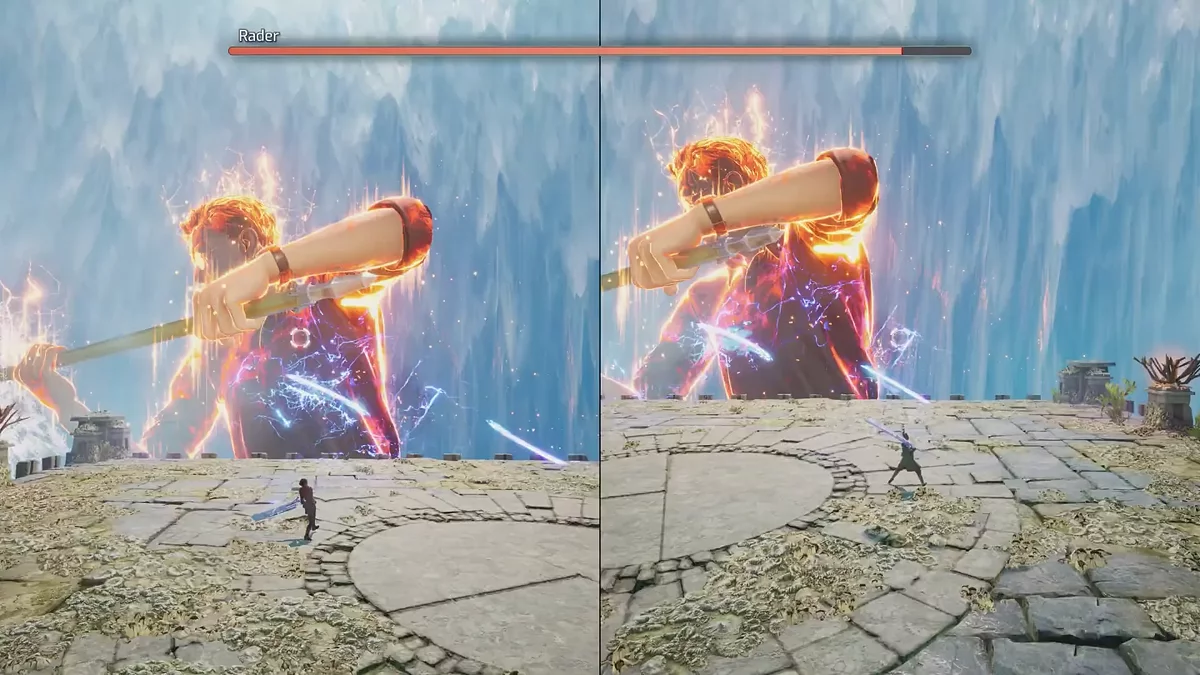 После этого цикл его атак временно повторяется, но постепенно на арене начинают появляться знакомые глитч-фрагменты. Продолжайте маневрировать, собирайте каждый осколок, и, когда глитч восстановится, взаимодействуйте с ним. На этот раз Мио и Зои получают огромные футуристические мечи — оружие, достойное того, чтобы Клауд Страйф пустил слезу.