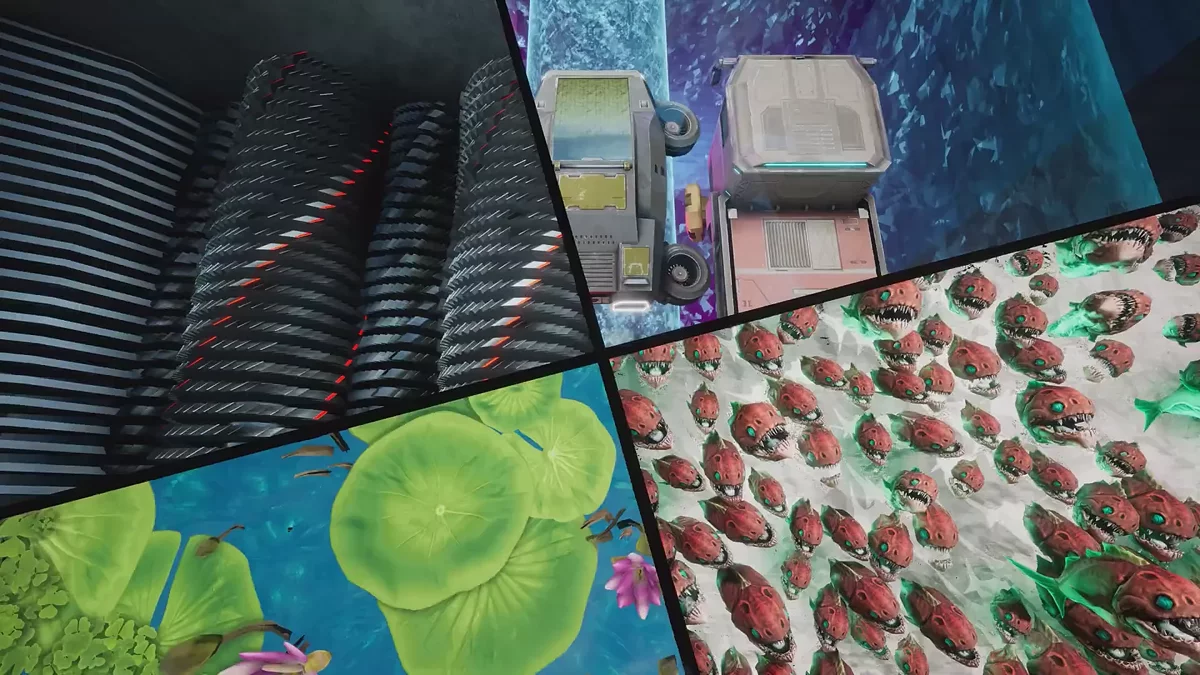 Следующая зона — одна из самых эффектных во всей игре. «Cross Section» выглядит так, будто пол под вами решил жить своей собственной жизнью: формы меняются, поверхности исчезают, появляются новые опасности — и всё это в постоянном движении. Главная задача здесь проста: держитесь на лилиях. Всё остальное — мгновенная смерть.