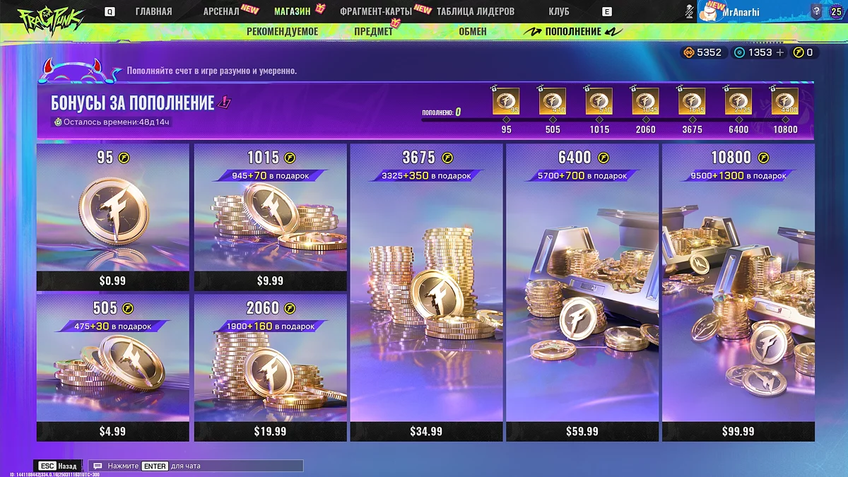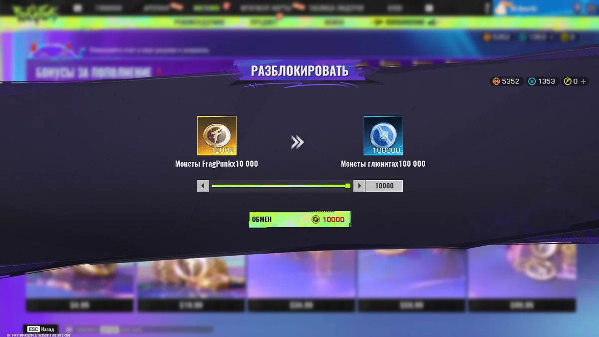Для тех, кто хочет сэкономить время и быстрее достичь своих целей, в игре предусмотрен донат. Вы можете приобрести Монеты FragPunk за реальные деньги, а затем обменять их на золото и монеты глюнита. Эти монеты также можно заработать, выполняя задания в рамках крупных ивентов. Кроме того, за Монеты FragPunk можно купить эксклюзивные скины, лутбоксы и лансеры, которые сделают ваш аккаунт очень ценным.