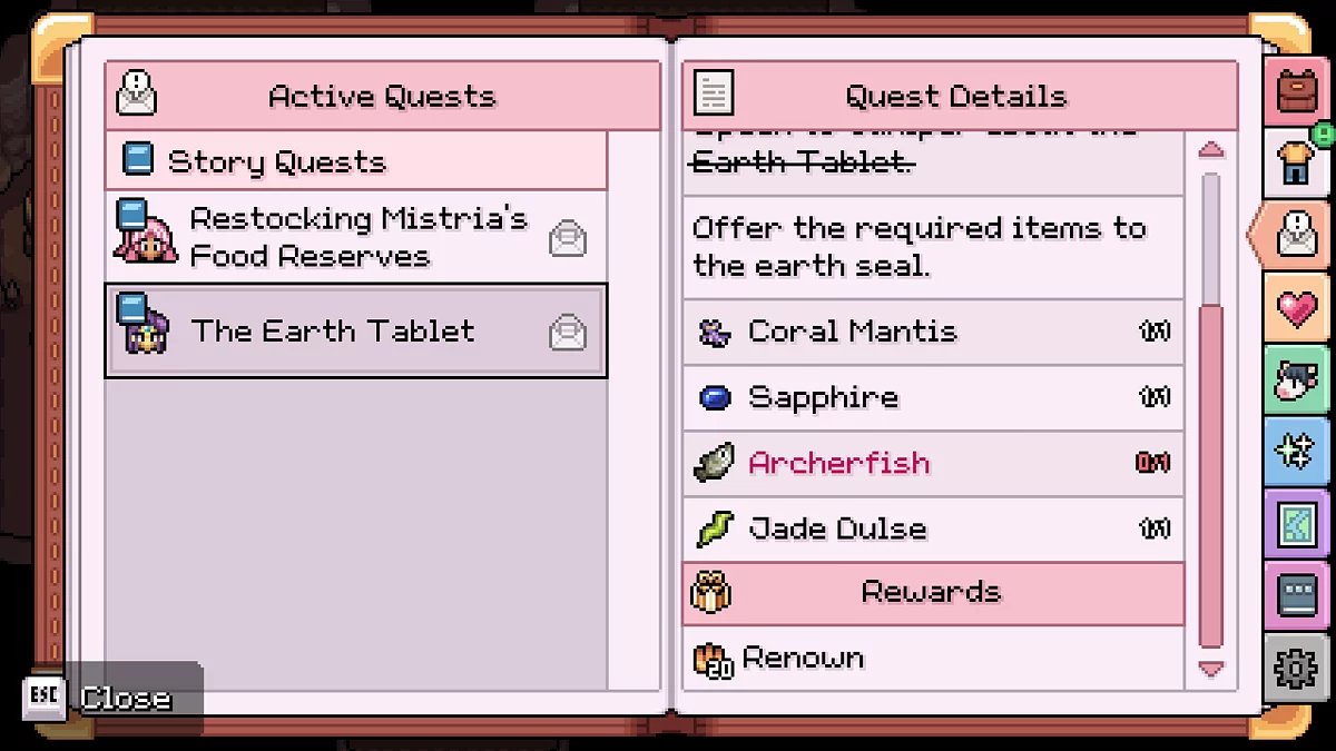 На тридцать девятом уровне игроков встретит табличка, которую нужно перевести у Juniper. Затем активируется новый сюжетный квест The Earth Tablet. После этого можно начать поиск новых предметов для открытия двери в следующий биом.