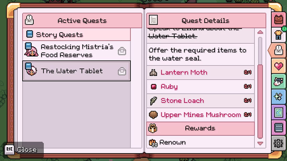 Для того чтобы попасть во второй биом подземелий, необходимо открыть дверь на девятнадцатом уровне. Для этого нужно в городе поговорить с персонажем Juniper и перевести найденную перед входом в следующий биом табличку. После этого активируется квест The Water Tablet по поиску предметов для открытия двери.