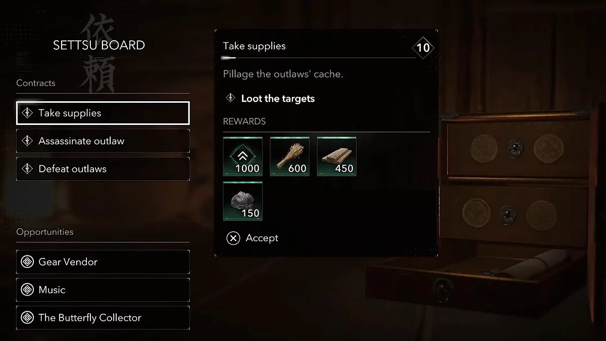 Вы всегда можете взять на выполнение заказ в вашем убежище или в специальных местах под названием Какурэга в городах. Обращайте внимания на те поручения, которые дают больше всего наград: обычно это заказы на тихое убийство или похищение запасов.