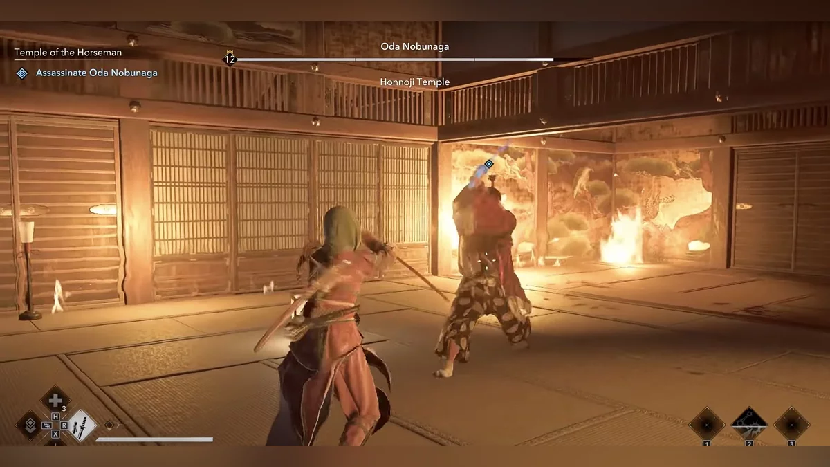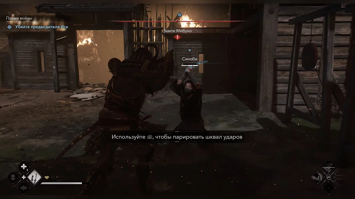 Подсказка для парирования отображается дольше, чем в предыдущем этапе миссии. Когда она появится, нажмите соответствующую кнопку, чтобы парировать атаку. Повторите это четыре раза.