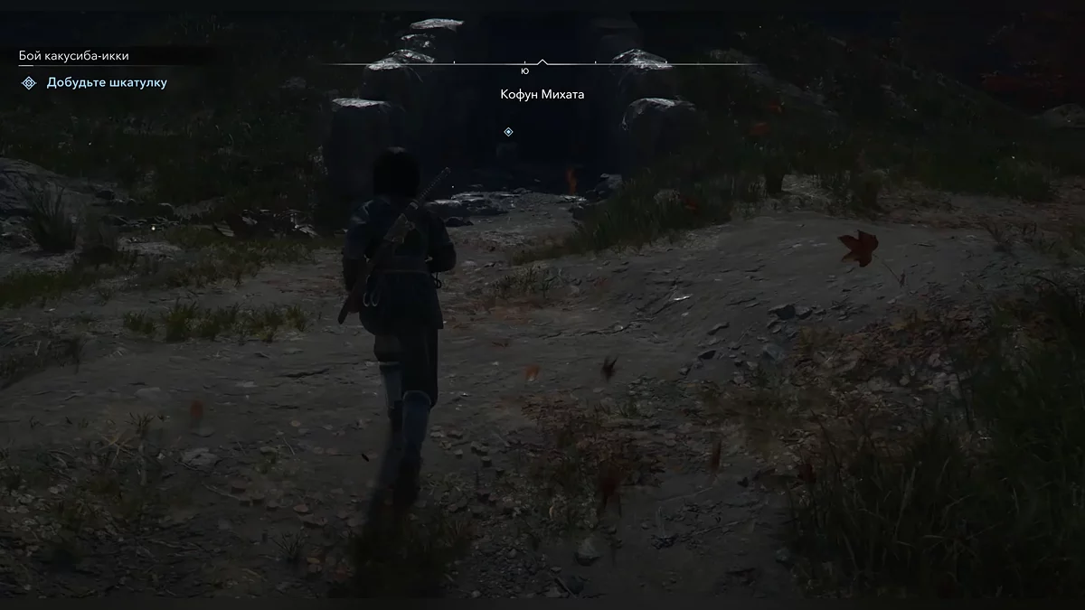 Когда окажетесь над солдатом, выполните быстрое убийство. Продолжайте двигаться на юг. Достигнув большого разрыва на пути, перепрыгните его. Пройдите по долине с текущей рекой, поднимитесь на другую сторону. Это приведёт вас к кофуну Михата. Спуститесь внутрь кофуна и взаимодействуйте с каменной дверью, украшенной символом Ордена ассасинов. Войдите внутрь и заберите ящик. После этого запустится катсцена, переходящая к следующему заданию «Самурай Онрё».