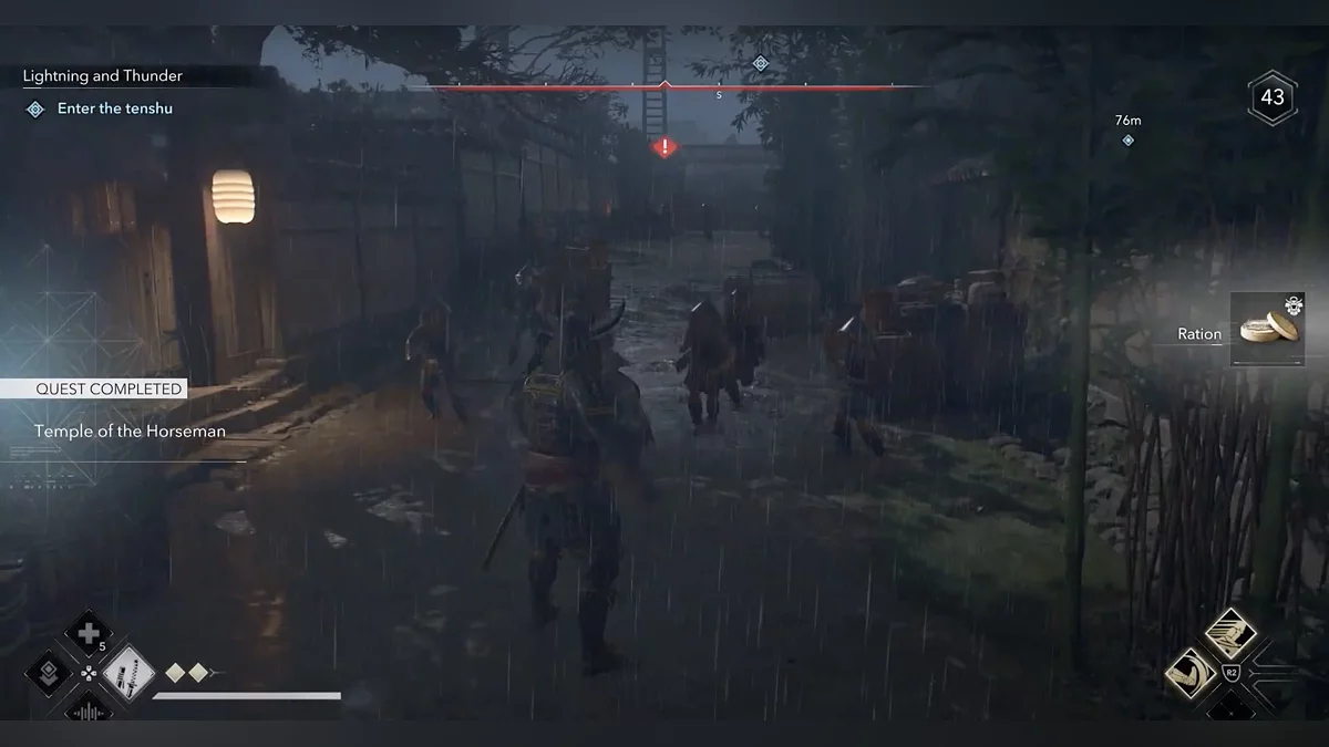 Двигайтесь на восток и следуйте по дороге к вашей лошади. После этого запустится катсцена. Следуйте на север к замку Мибуно, сражаясь с синоби по пути. Как только окажетесь за воротами, задание завершится.