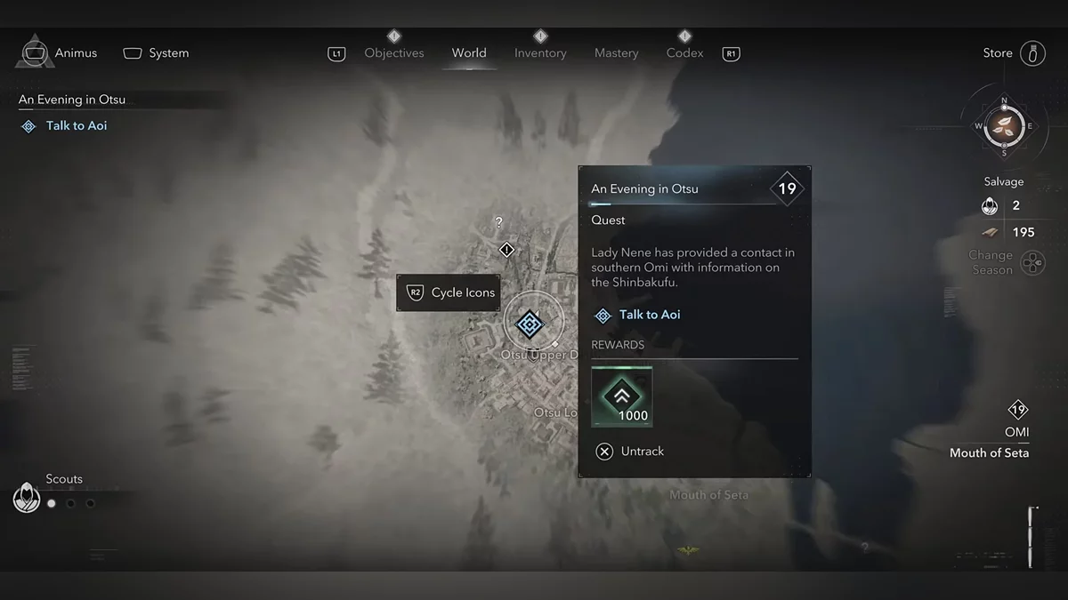 - Описание квеста: замершие во времени следы прошлого Братства ассасинов можно найти в секретных форпостах по всей стране. Наоэ продолжает свои поиски в Оми.