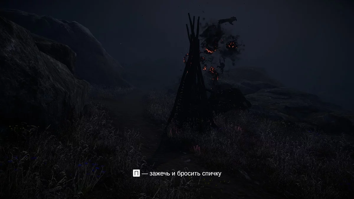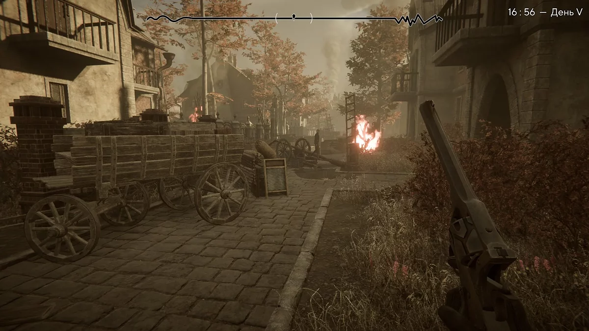 Игра начинается в Столице. Сначала нужно поговорить с людьми, стоящими у окна. После вас перенесет в другую локацию — нужно будет побеседовать с добровольцем и двинуться по тропинке, зажигая костры (используйте клавишу G, чтобы бросить горящую спичку). Огонь будет отпугивать чумного монстра.
