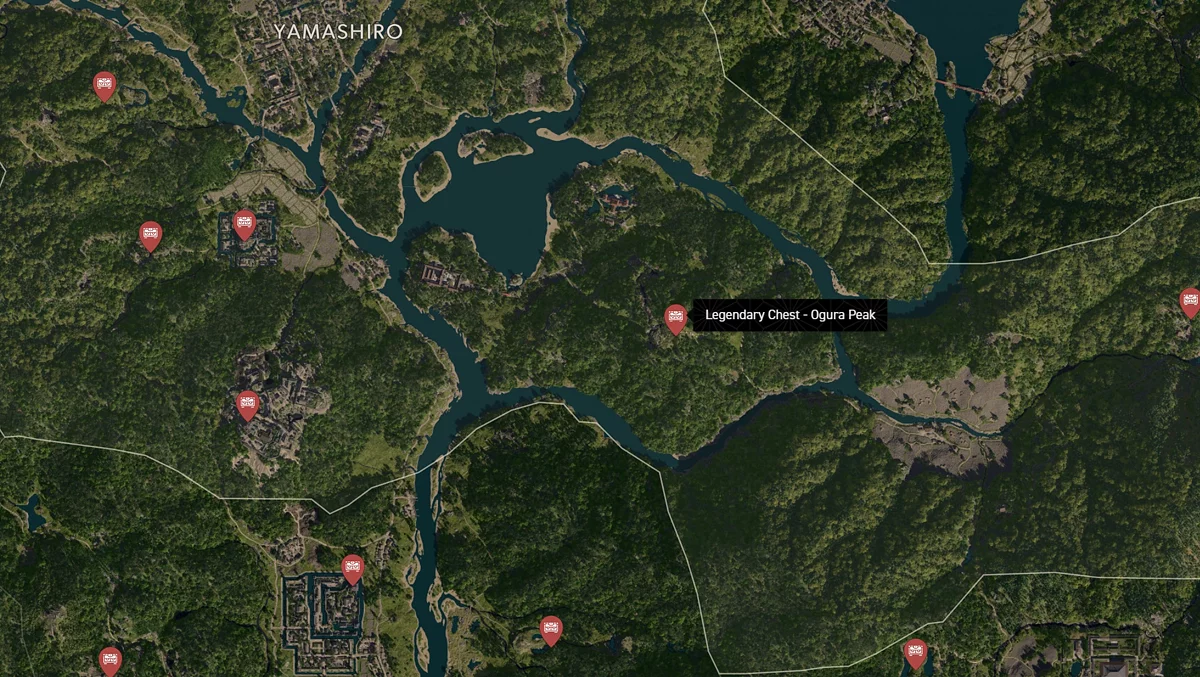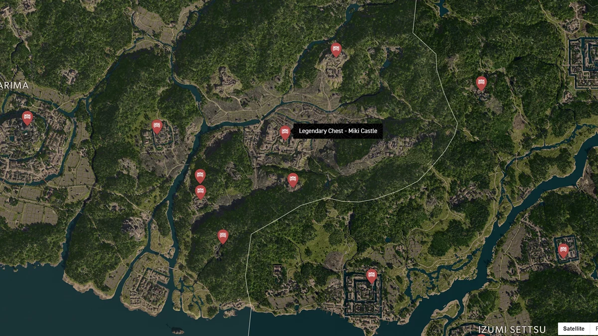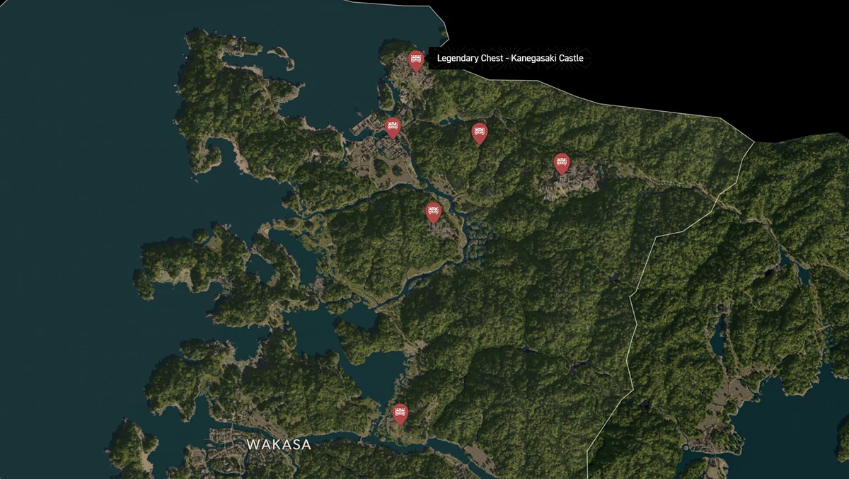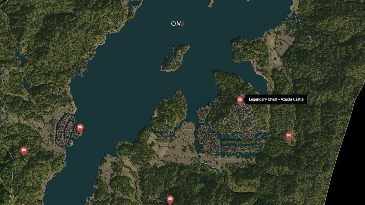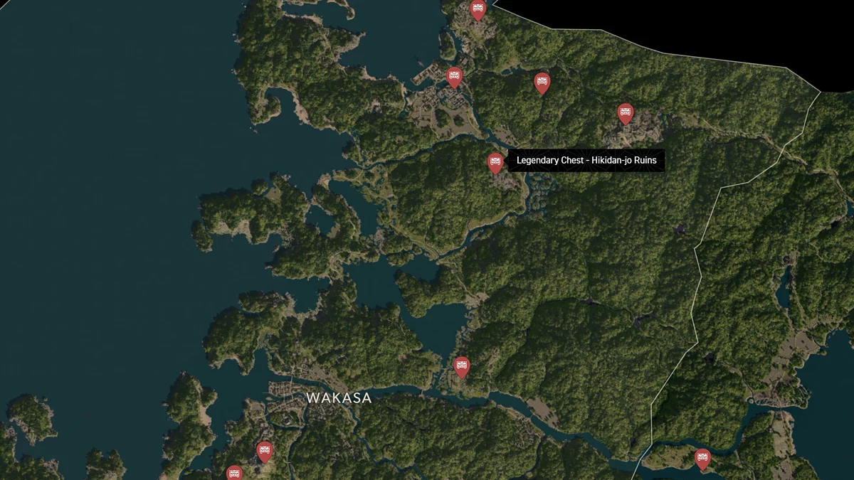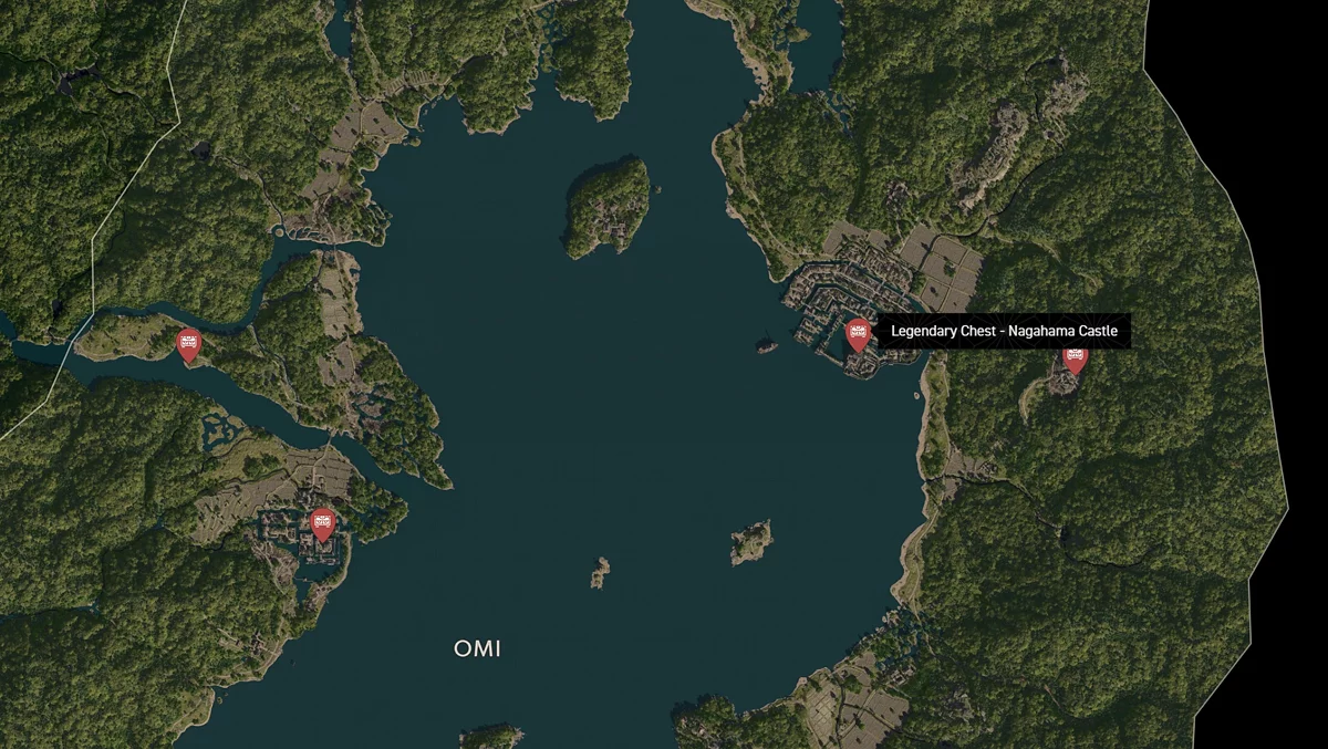 - Как найти: Крепость можно найти в центре округа. Чтобы открыть легендарный сундук, нужно победить двух самураев дайсё. Кейс можно найти в разрушенном здании на западной стороне территории замка.