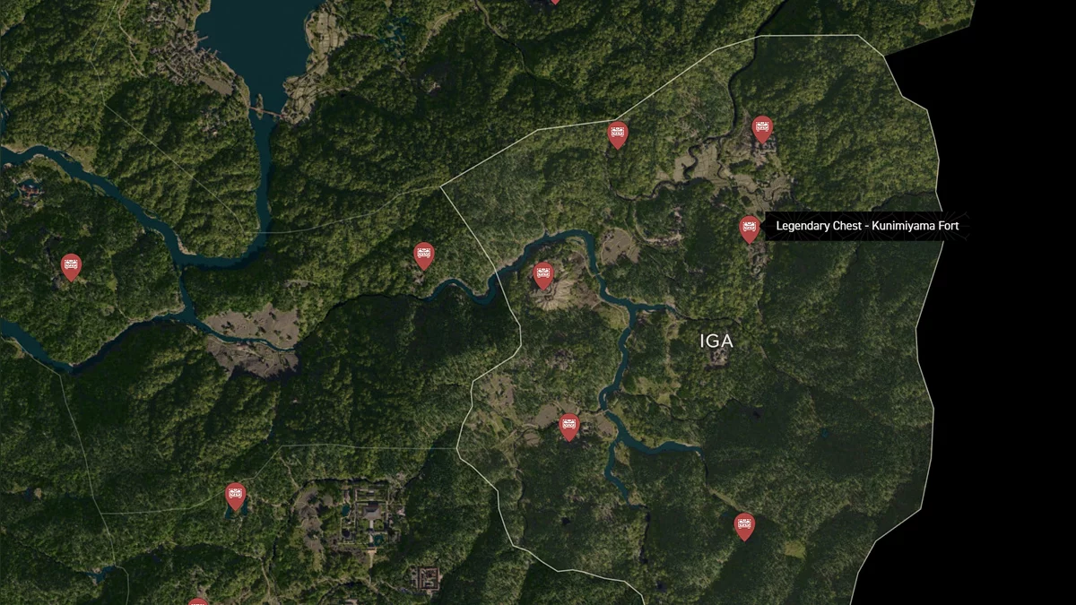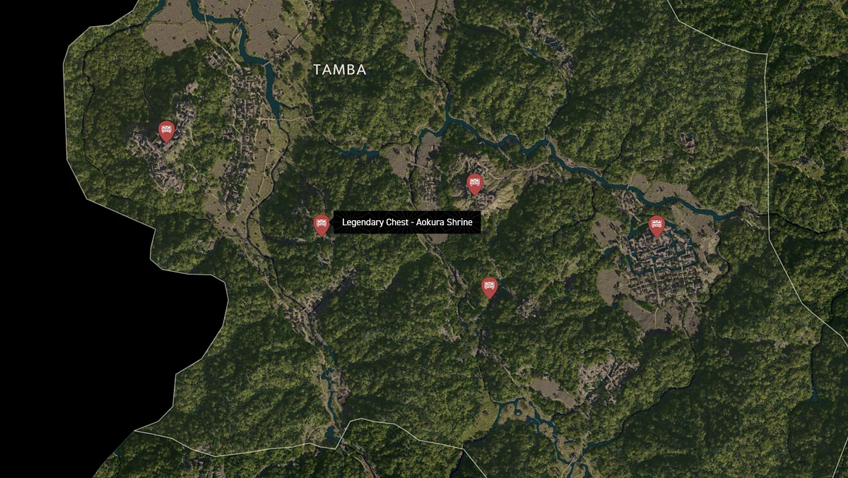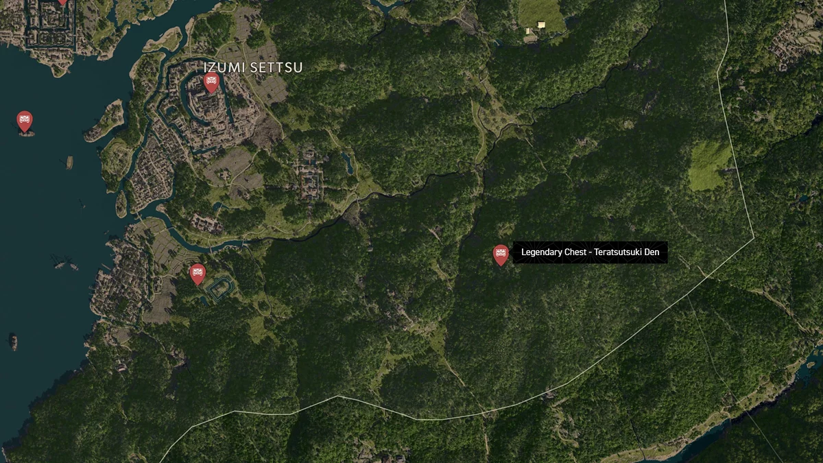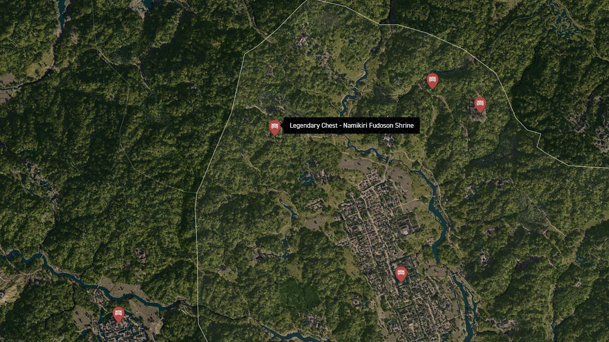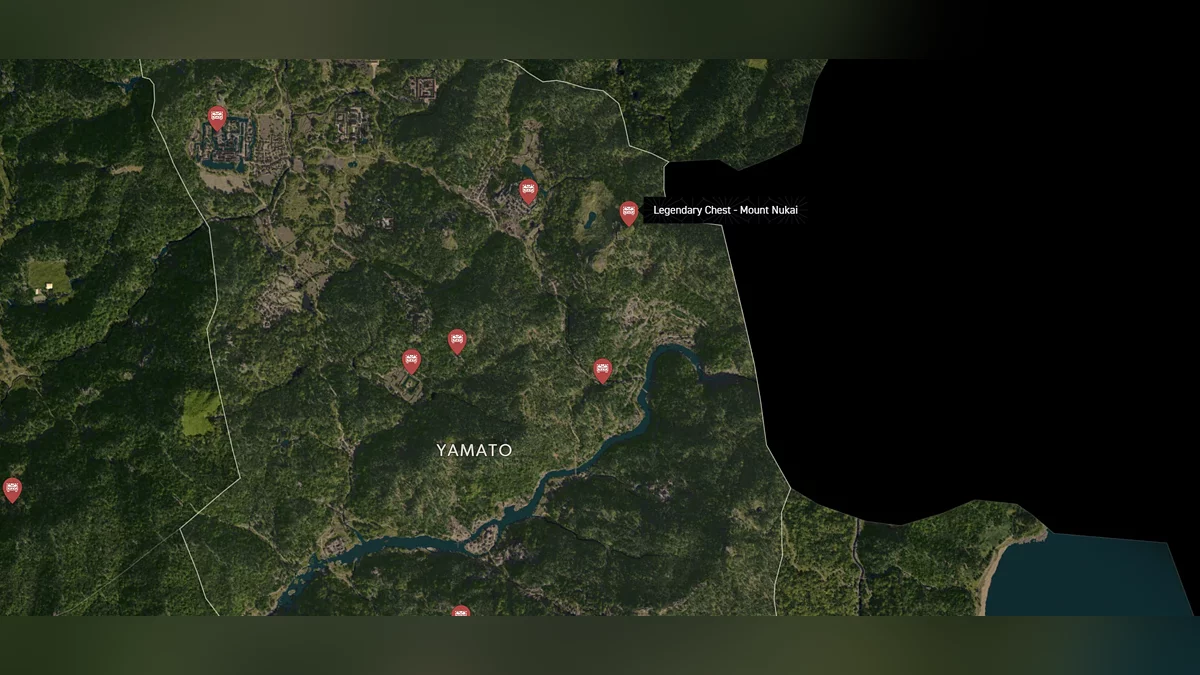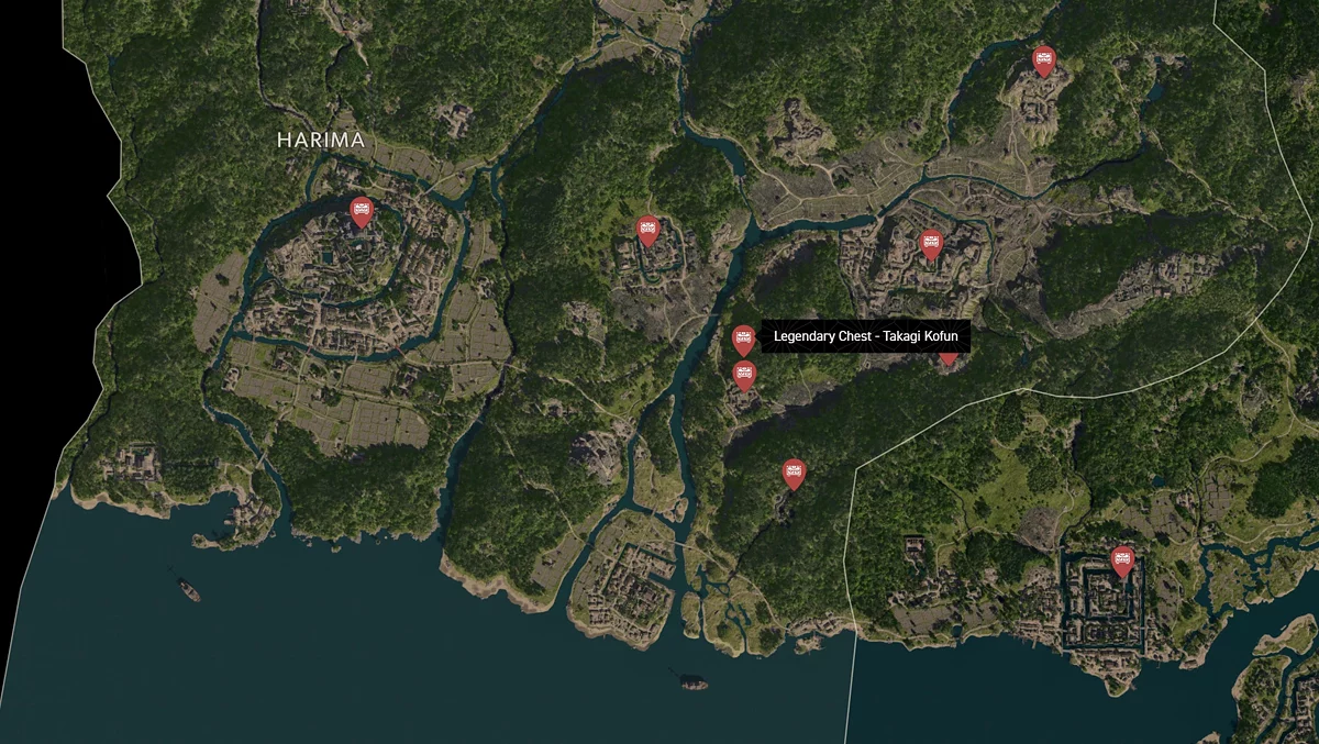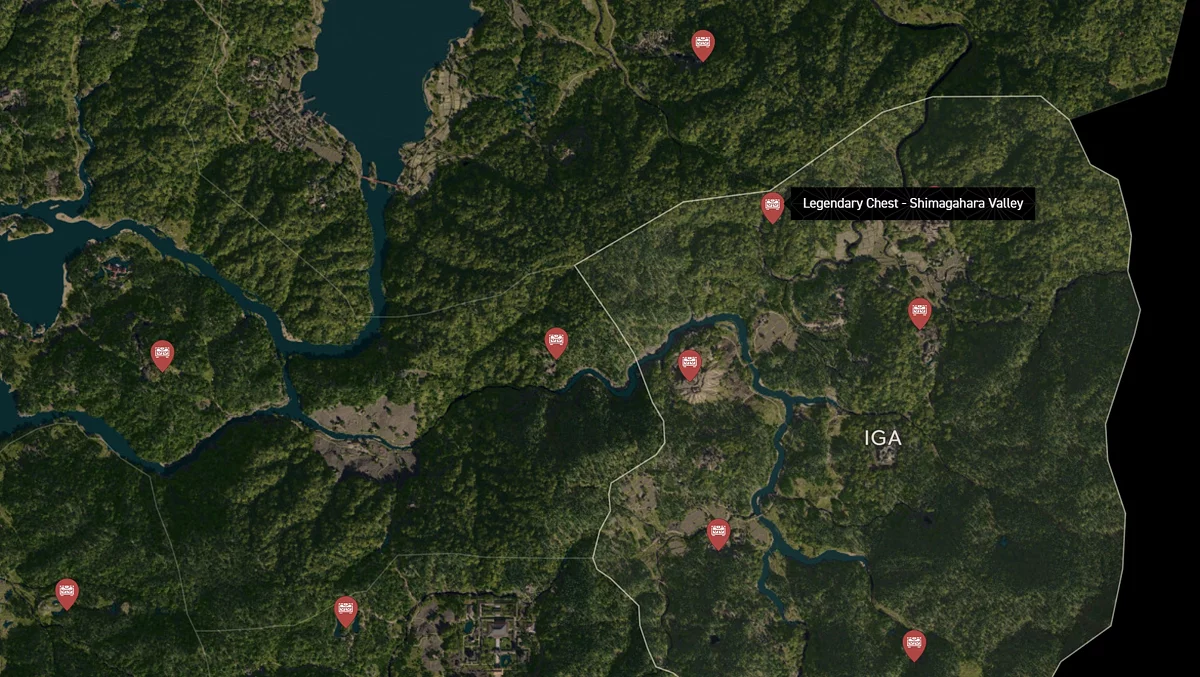 - Как найти: Крепость можно найти в центре округа. Чтобы открыть легендарный сундук, нужно победить двух самураев дайсё. Кейс можно найти в разрушенном здании на западной стороне территории замка.