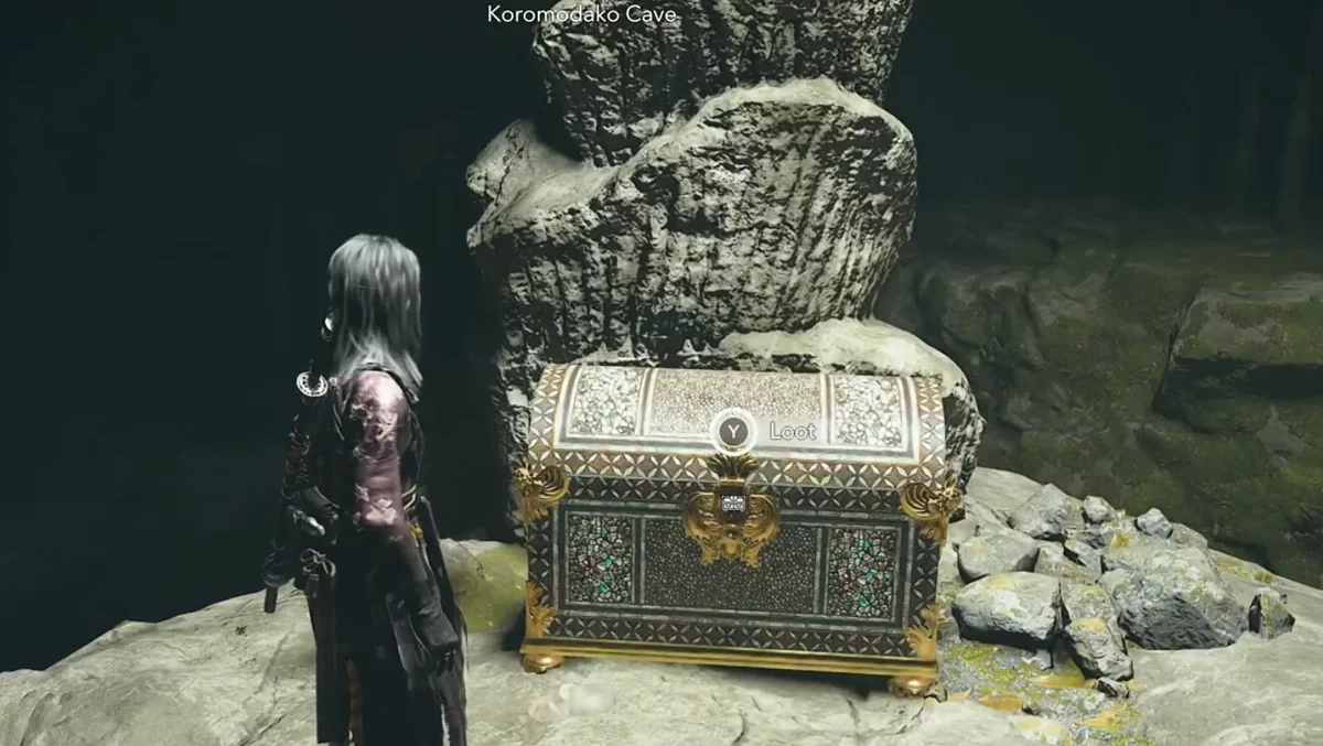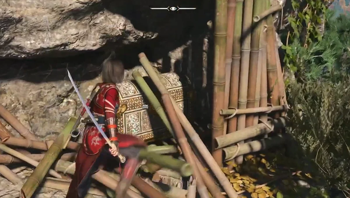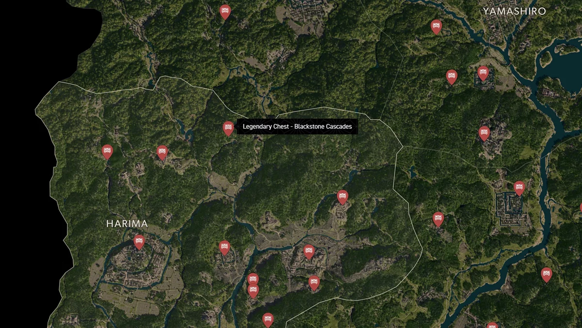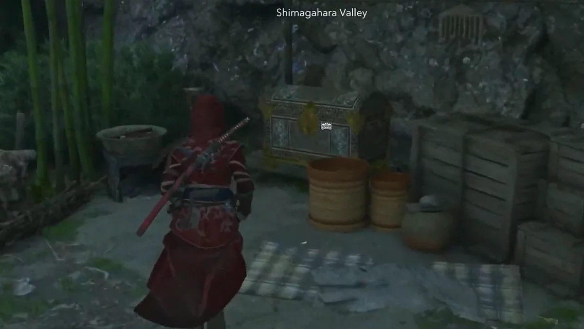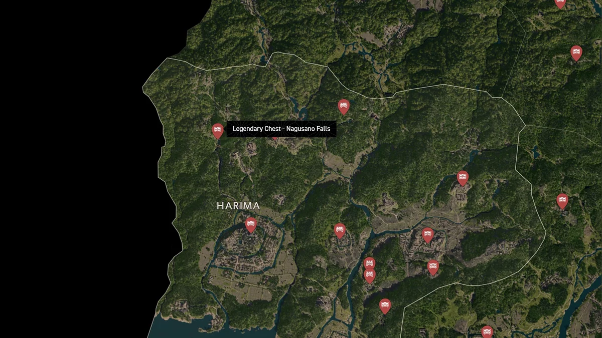 - Как найти: Направляйтесь к водопаду в северной части Харимы. За водной стеной есть скрытая пещера. Найдете сундук в конце туннеля.