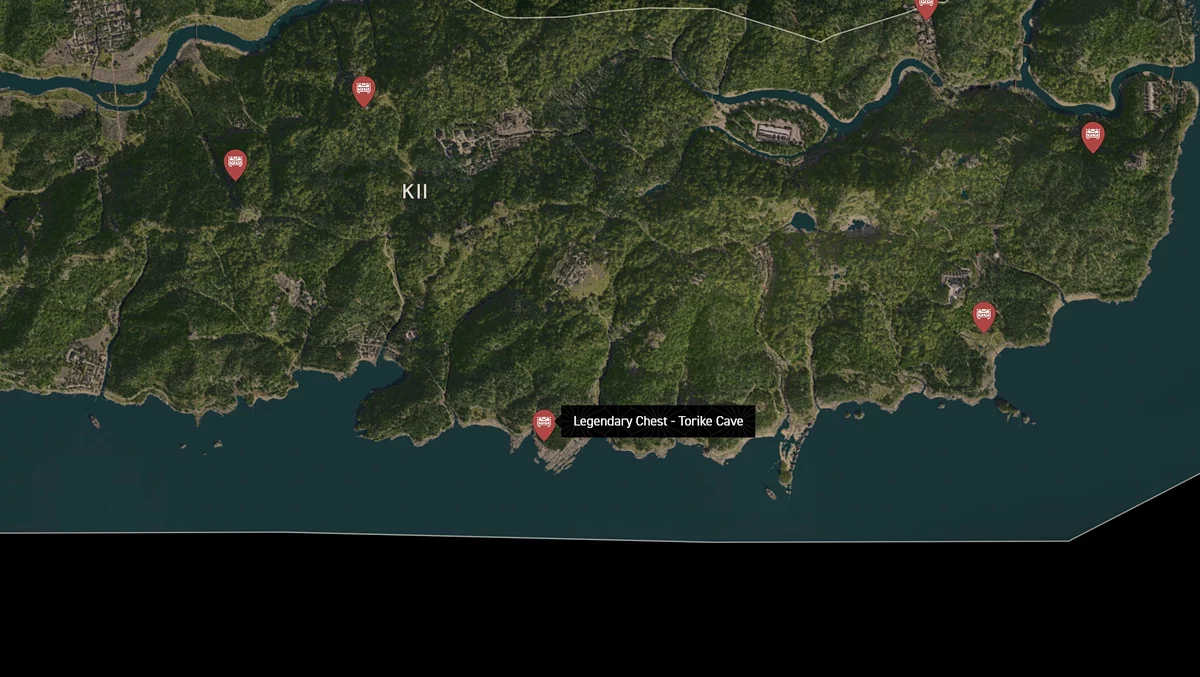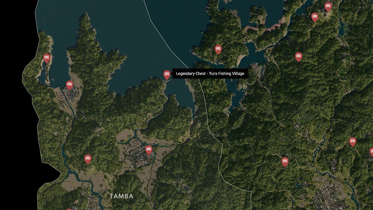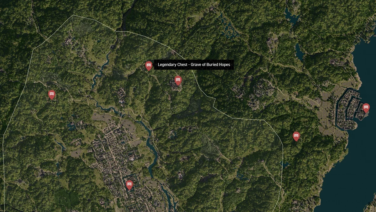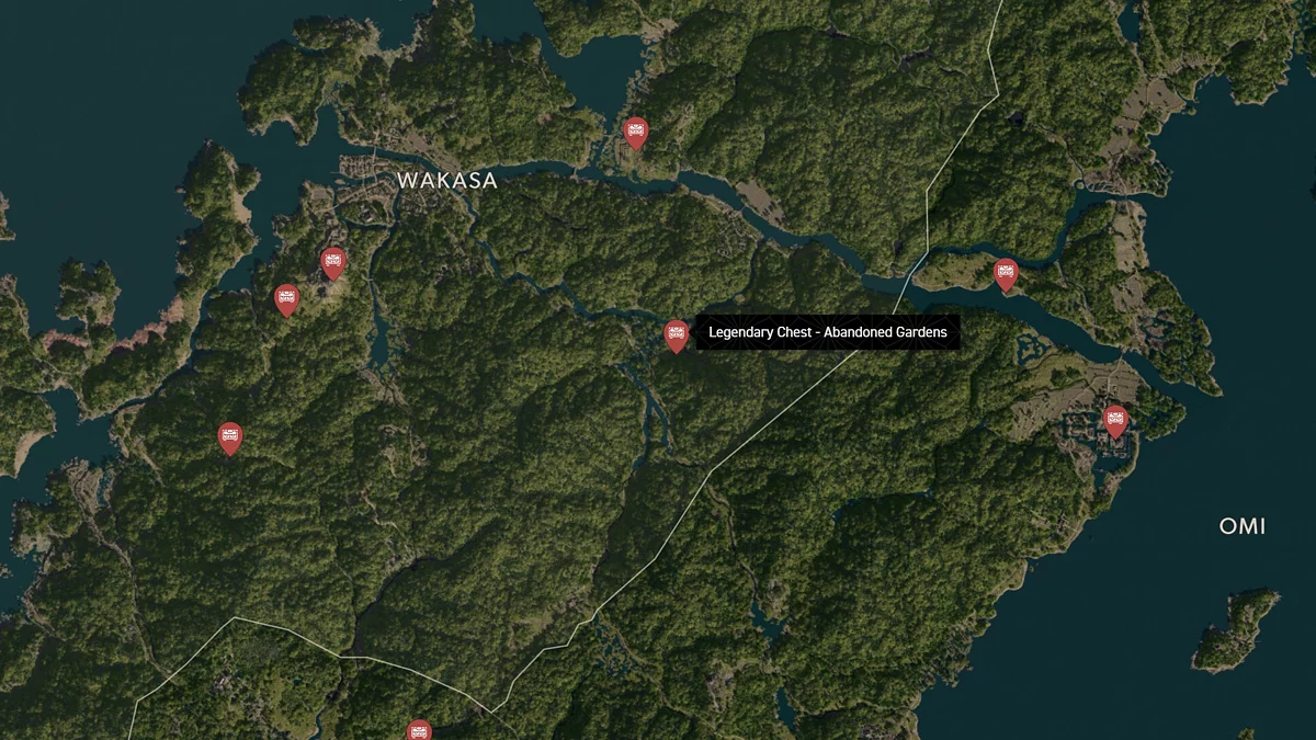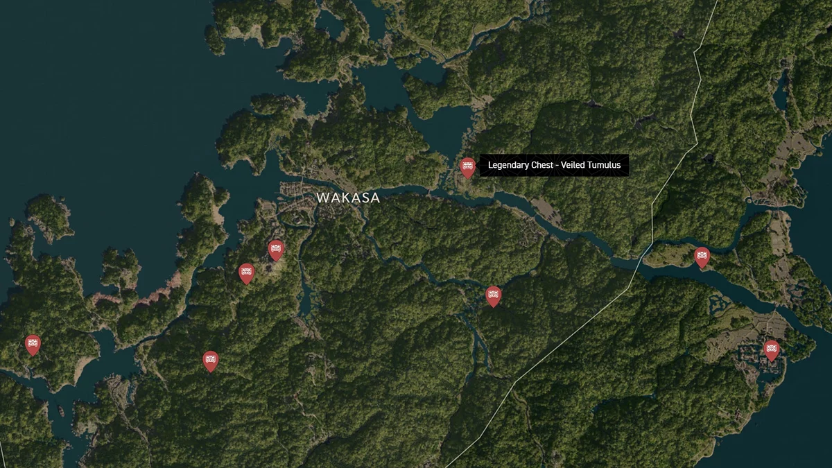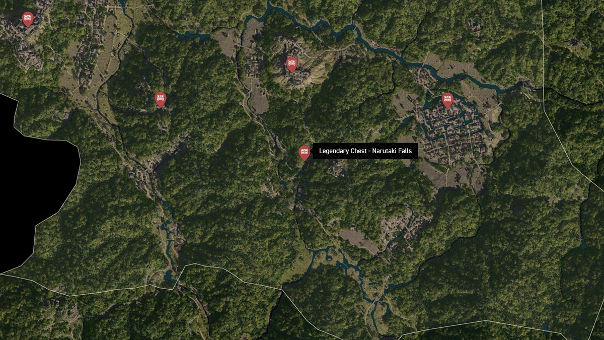 - Как найти: Водопад находится на севере региона. Поднимитесь на вершину потока и найдите сундук за большим камнем.