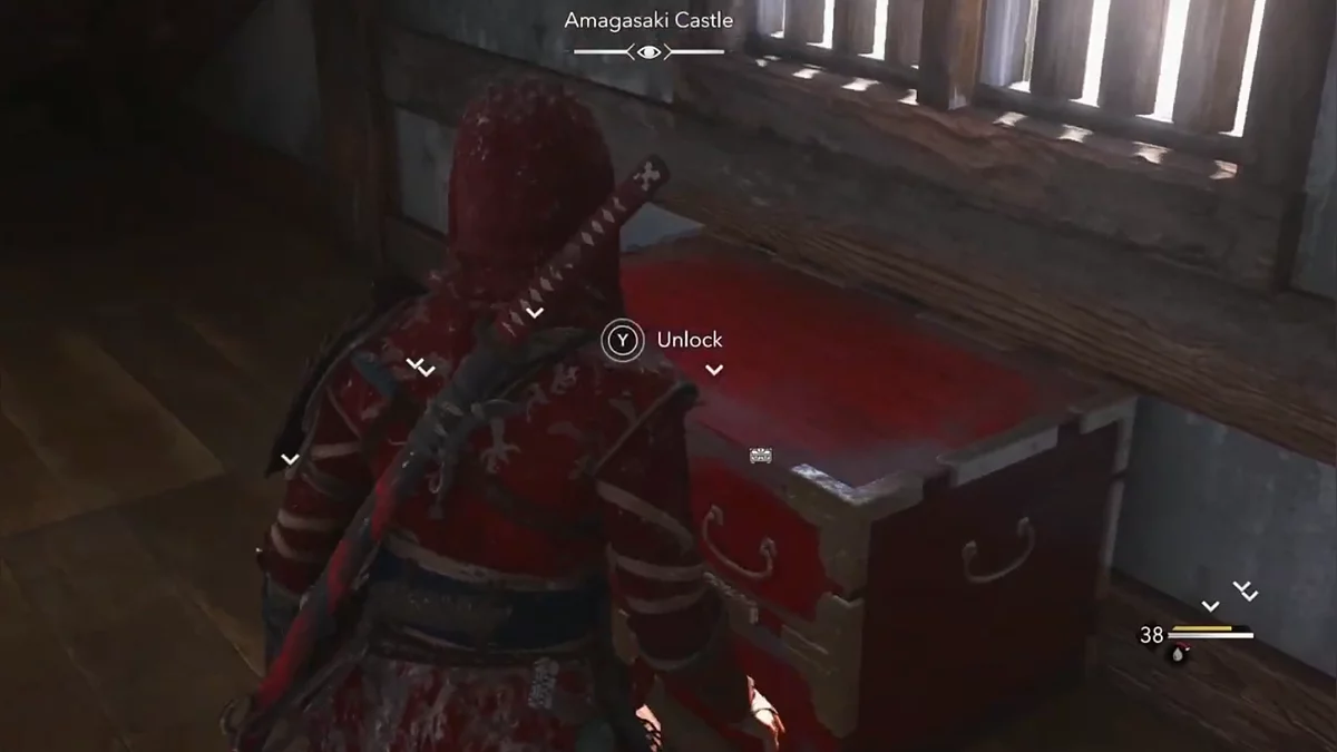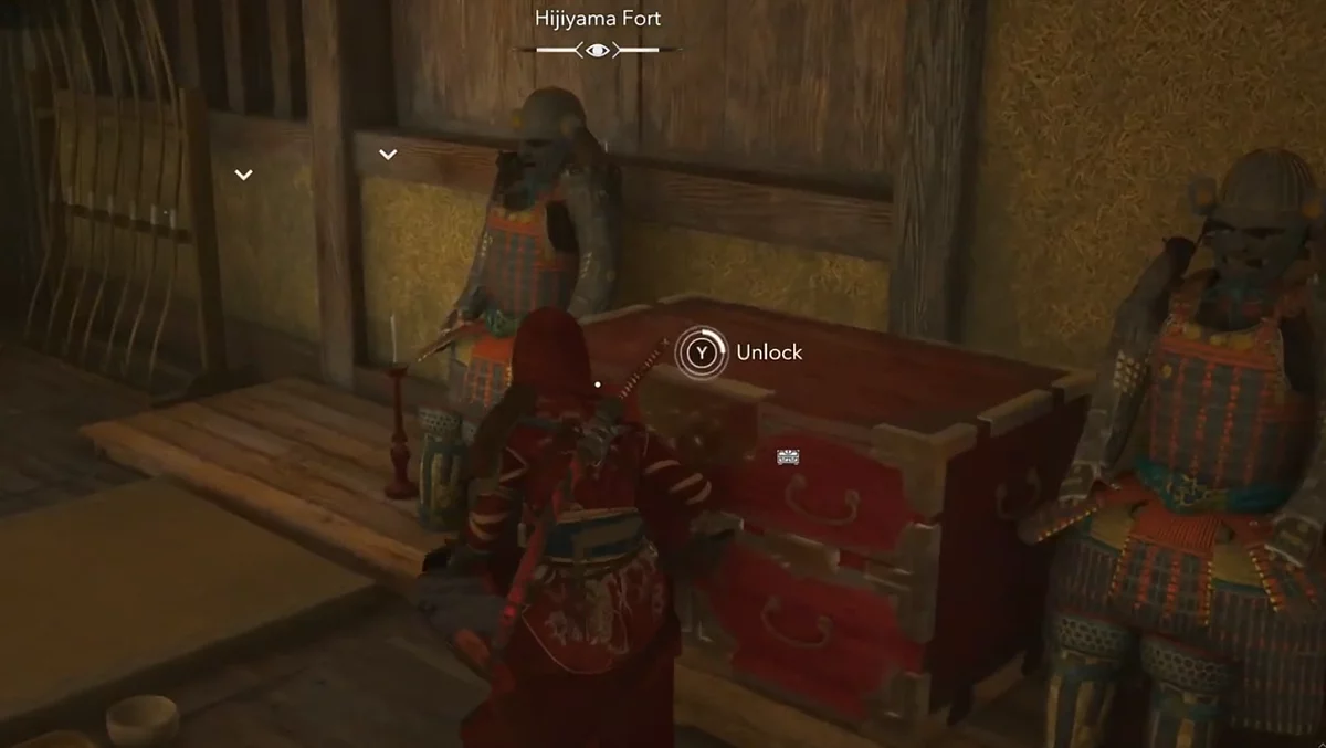- Как найти: Найдите крепость в центре региона. Откройте сундук, который находится на первом этаже сигнальной башни, после убийства самурая.