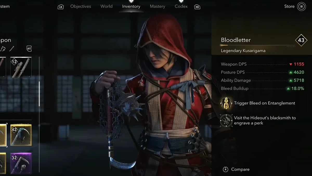 - Награда: Кусаригама — Кровопускатель (Bloodletter).