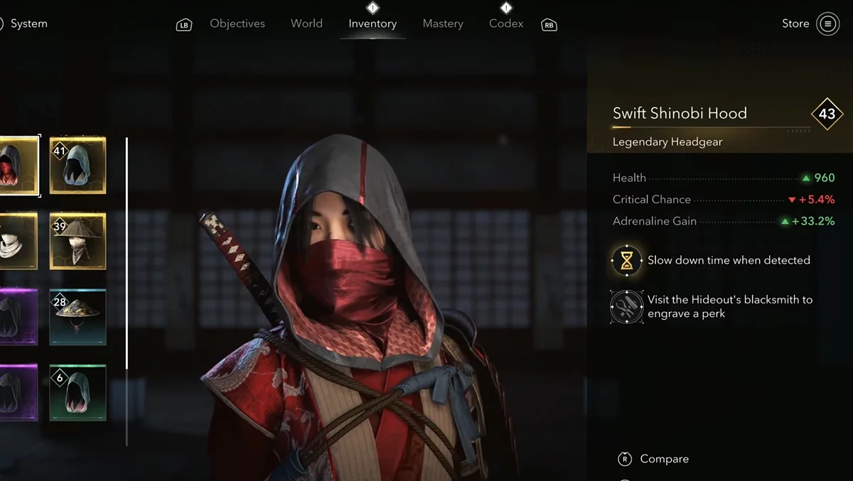 - Награда: Головной убор — Капюшон быстрого синоби (Swift Shinobi Hood).