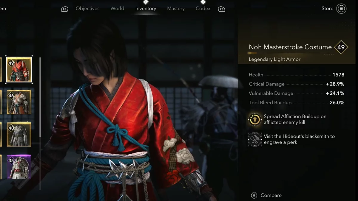 - Награда: Броня — Элегантный костюм самурая (Elegant Samurai Outfit).