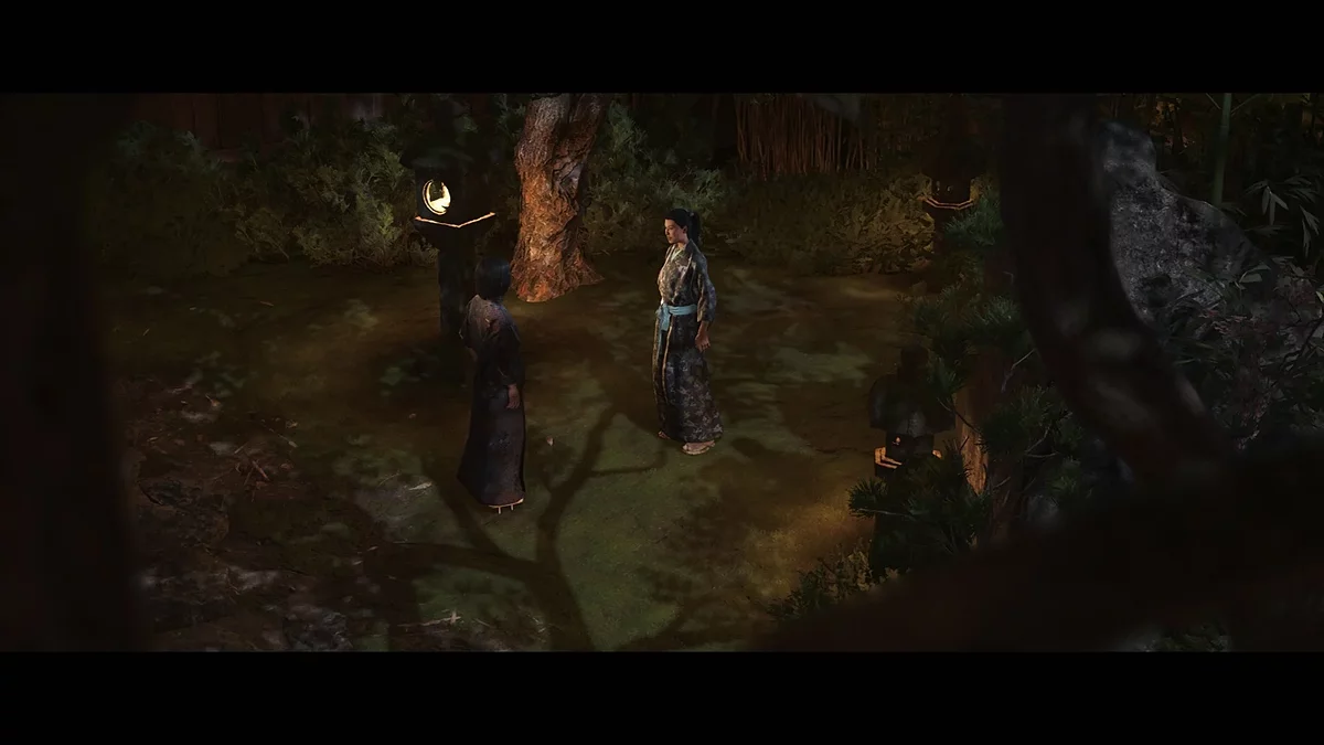 Прибыв к мастеру чайной церемонии, сперва вы должны пообщаться с ним, пока не появится один из генералов. Можете выбрать любые ответы, так как это не повлияет на сюжет кардинально. Однако перед самой церемонией у вас будет возможность отправиться во внутренний двор и побеседовать с другими женщинами, среди которых находится ваша цель.