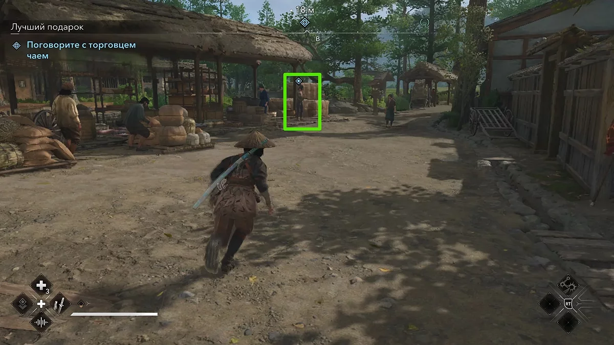 Как только получите наряд для церемонии, предстоит отыскать торговца чаем, чтобы пройти небольшое обучение и взять один из подарков мастера Сен но Рикю. Если вы отправите лазутчиков, то получите небольшую подсвеченную область для исследования в северной части города. Пройдите между лавок, чтобы обнаружить торговца.