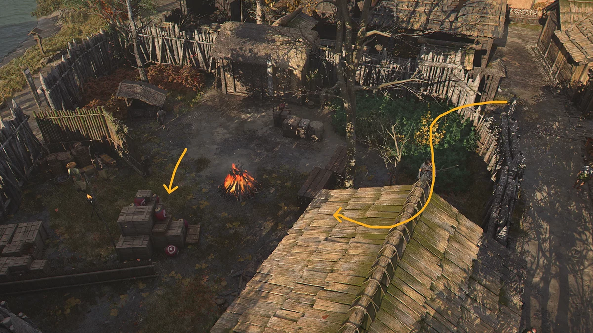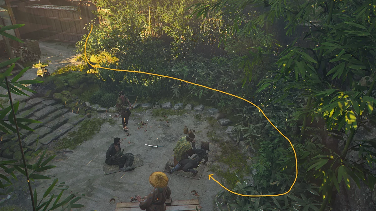 Отправляйтесь в регион Харима к крепости Такаги-Оцука. Найдите на юго-востоке от замка огороженный двор с парой домов. В лагере находятся три кабукимоно и два мечника. Проще всего в данной ситуации устранить одного главаря с верхотуры, затем пробраться к горшку и, когда остальные подойдут, взорвать его. Так будет проще добить уцелевших.