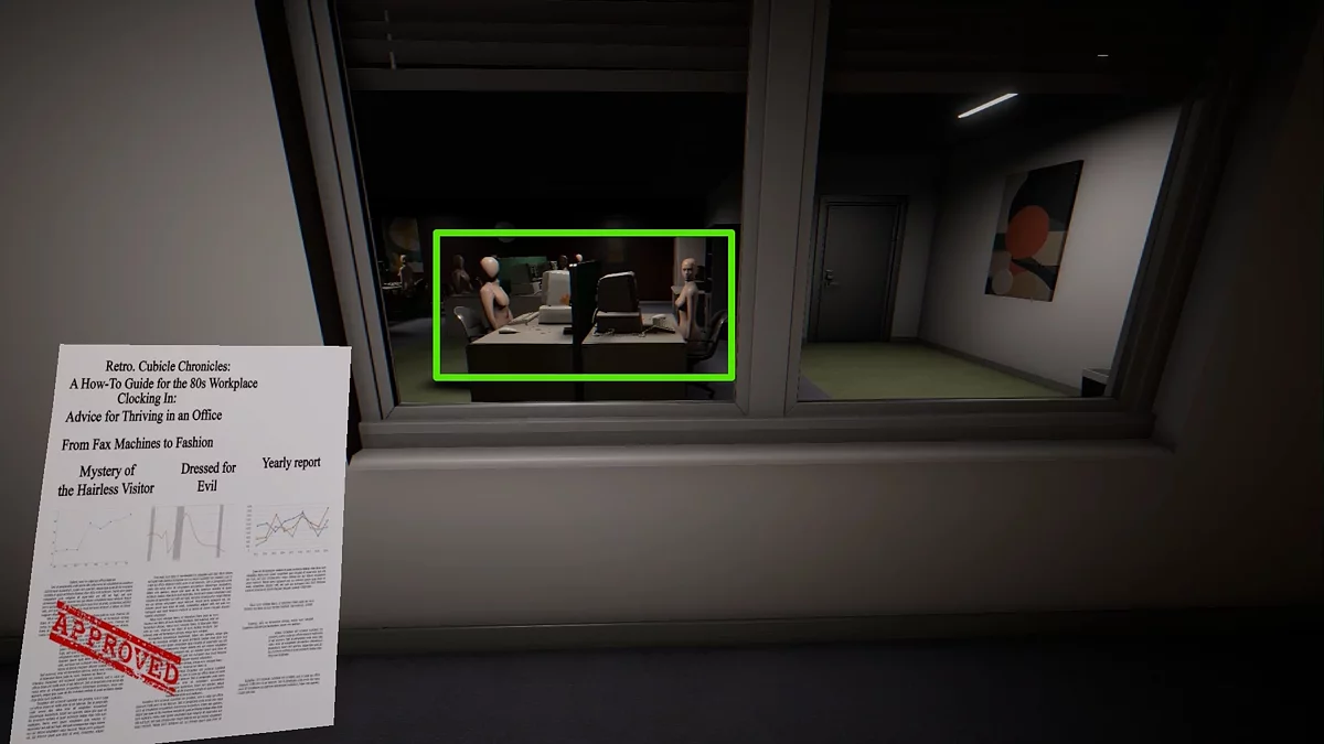 Окружение — ключевой элемент игры, который поможет выявить одну из четырех возможных аномалий. Если вы, например, наткнулись на офис с номером 404, заметили самопроизвольно открывающиеся шкафчики или, что еще более жутко, обнаружили присутствие какой-то сущности (иногда один из офисов становится обителью манекенов), немедленно сообщите об этом охраннику. Что произойдет, если этого не сделать, мы расскажем в следующем разделе.