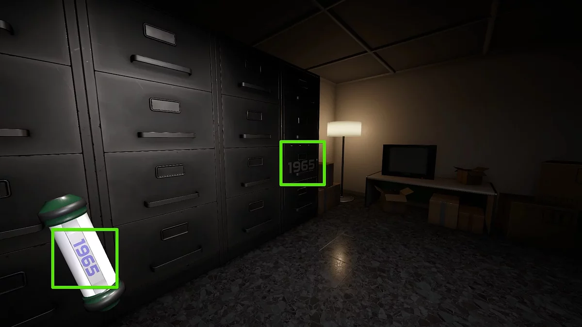 Архив компании располагается в кабинете №707. Здесь вы увидите три больших стеллажа, на каждом из которых будет активен один или несколько выдвижных ящиков. Ваша задача — взаимодействовать с рубильником на столе, подобрать колбу и поместить её в ящик с соответствующим номером. Ничего сложного.