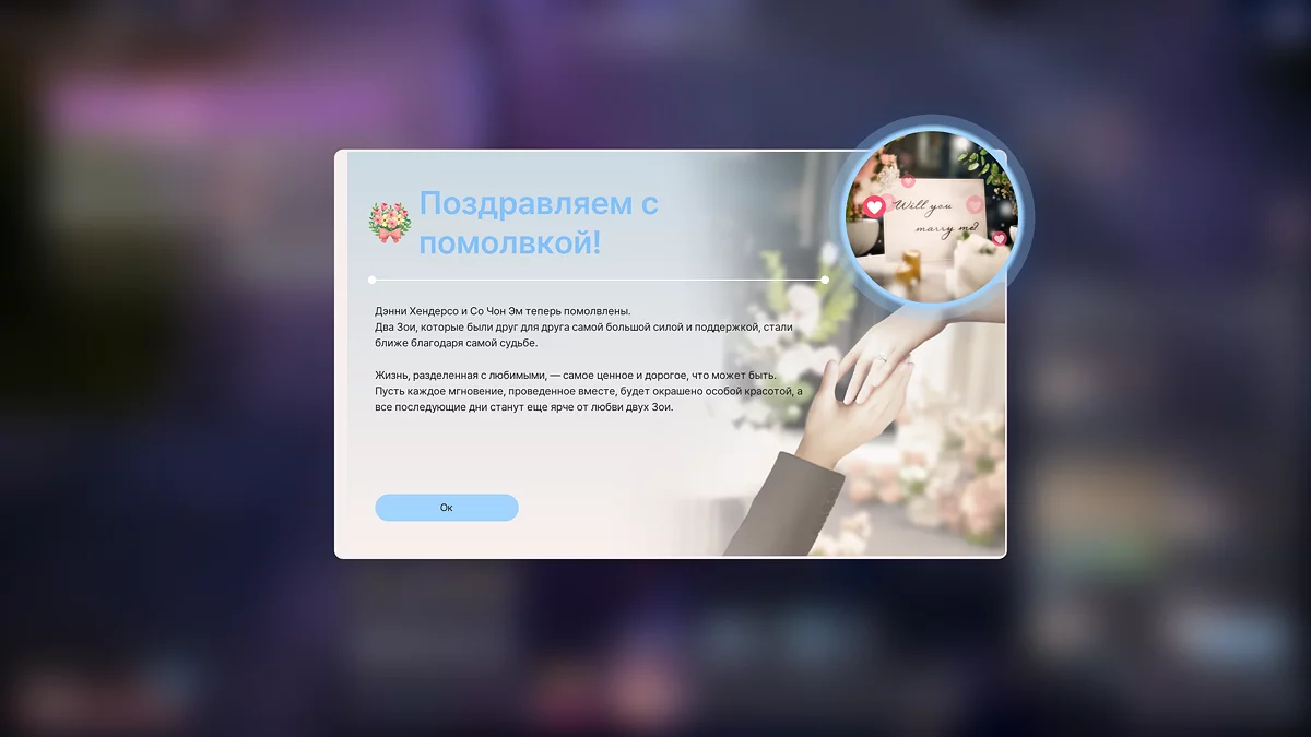 Сближение проходит через несколько этапов. К взаимной симпатии может привести легкий флирт, ведите общение до статуса «Взаимная симпатия», после этого можно смело приглашать на свидание. На свидании можно повысить уровень отношений до статуса «Истинная любовь», после чего можно сделать предложение о свадьбе.