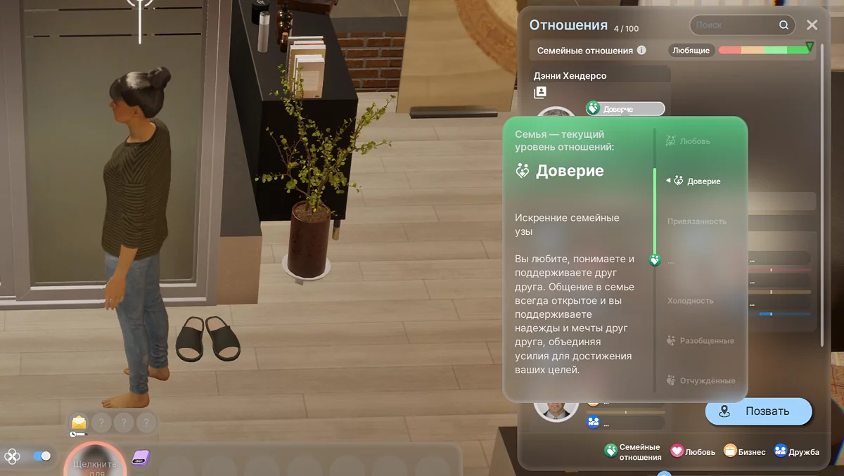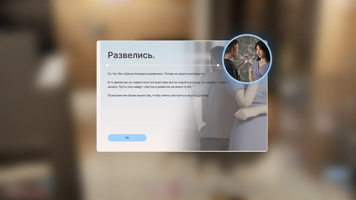 Теперь у игрока появляется возможность управлять ещё одним персонажем, которого нужно развивать и заботиться о его потребностях. Важно помнить, что если супруг увидит, как другой персонаж флиртует или проводит время с кем-то другим, он может расценить это как измену и инициировать развод. Принять решение о разводе в любой момент.