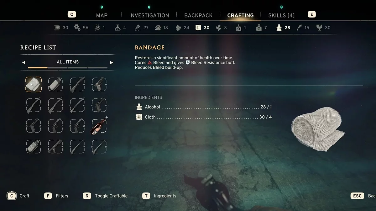 Во время исследования игры вы будете находить множество предметов и материалов для крафта. Однако важно помнить об ограничениях объема инвентаря, например, вы не можете нести больше 30 единиц ткани.