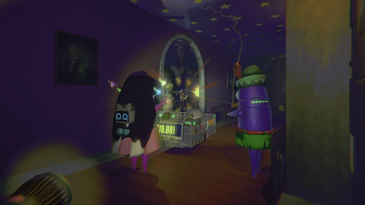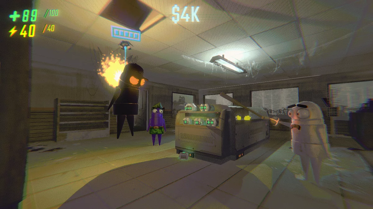Если андроид умер, вы можете его воскресить, если поместите голову в зону сбора или в трейлер, когда выполнили норму. Из точки сбора он появится с 1 очком здоровья, а вот в трейлере ему восстановят дополнительно 25 здоровья. Кроме этого, вы можете заметить на затылке андроидов полоску здоровья. Если схватить за неё, то начнёте передавать по 10 очков здоровья. Это полезно, особенно если учитывать, что в игре очень много быстрого мелкого урона (удар гнома, союзник стукнул предметом и подобные).