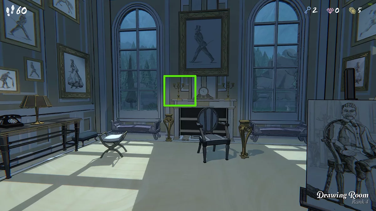 Это очень полезная комната, так как даёт игроку некоторые преимущества и имеет три прохода. К тому же здесь вы можете отыскать сейф. Да, поначалу он скрыт — придётся его найти. Для этого взаимодействуйте с левым подсвечником над камином.