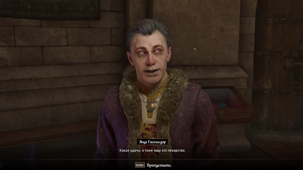 Собрав все ингредиенты, возвращайтесь к ведьме. Через сутки у неё будет готово лекарство. Чтобы завершить квест, вернитесь к графу и отдайте зелье, оно не подействует на его жену, и вы получите флакон обратно. После этого подождите полдня и вернитесь к дворянину за наградой в виде щедрой суммы золота.