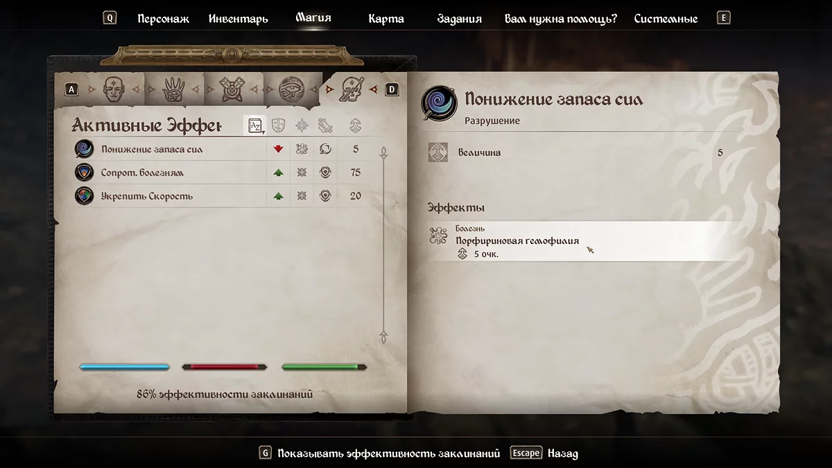 - Эффект от болезни: понижение запаса сил на 5 единиц.