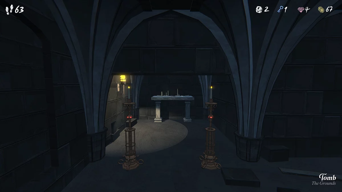 В некоторых подсвечников в Гробнице будут рубины. Это значит, что можно зажечь свечки на них, чтобы активировать механизм. Для этого вам понадобится Горящее стекло. Чтобы его создать, нужно открыть Мастерскую в особняке и там объединить Увеличительное стекло и Металлоискатель. Подробнее об этом предмете мы рассказывали в другом гайде.