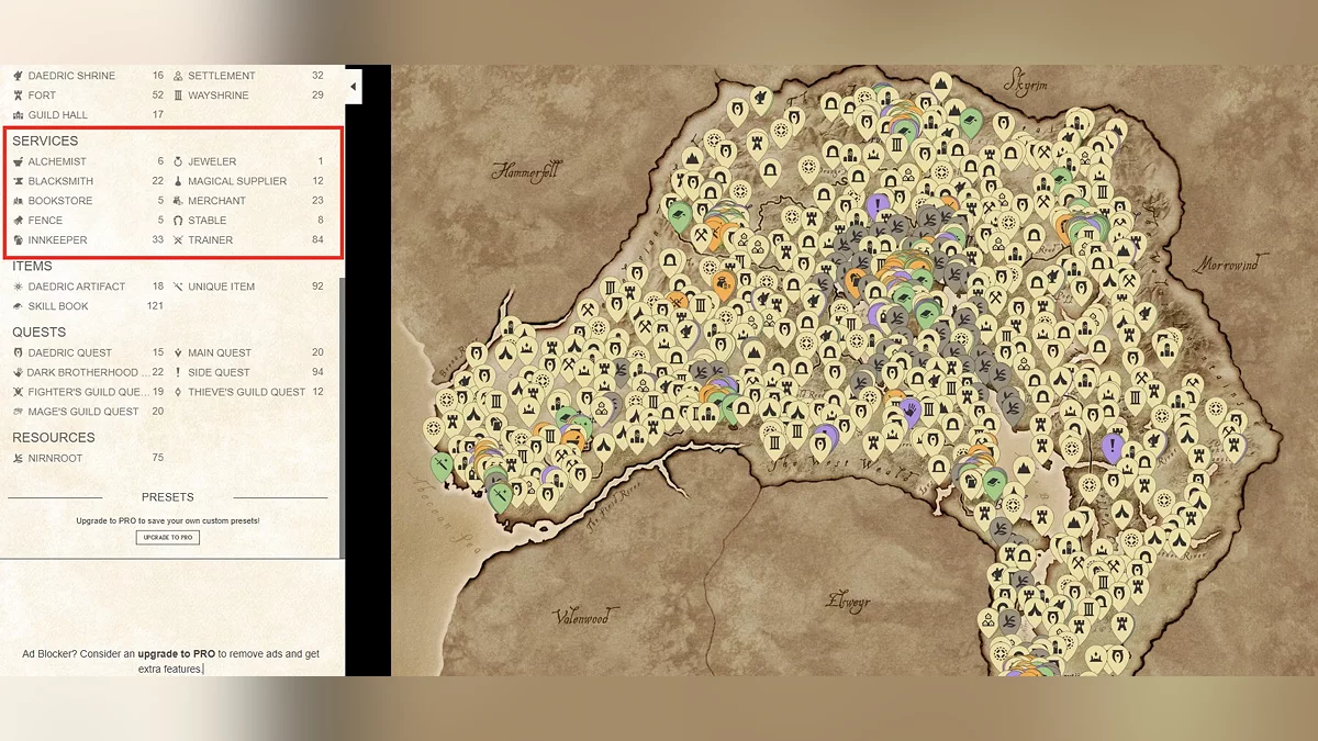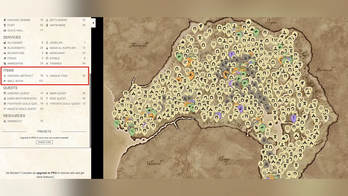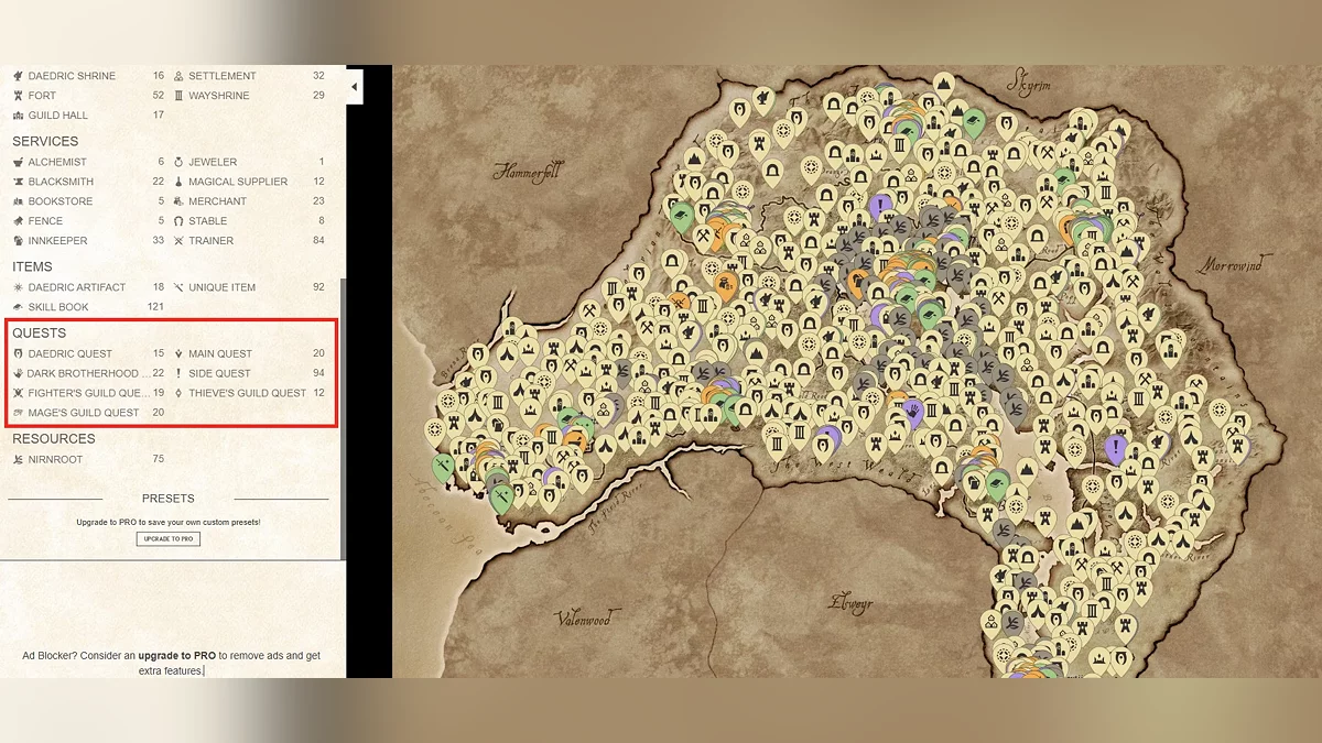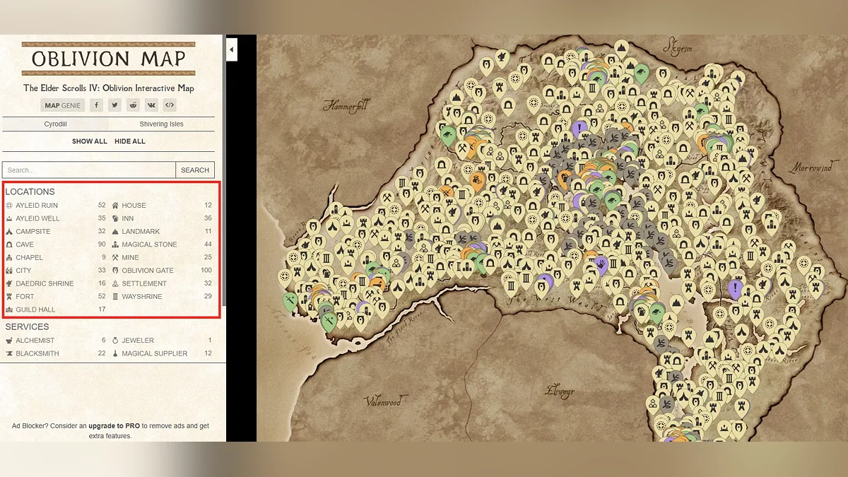 Интерактивная карта Сиродила в The Elder Scrolls 4: Oblivion Remastered