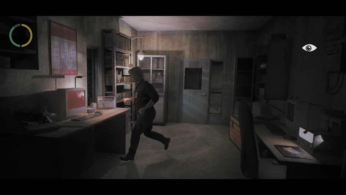 Пройдитесь вперед до закрытых ворот. Теперь вернемся к стене, где появится желтая дверь. Внутри будет ждать небольшое подсобное помещение, в котором можно сохранить игровой прогресс. Для этого необходимо взаимодействовать с радио, стоящем на столе. Также можете прослушать ранее найденную кассету.