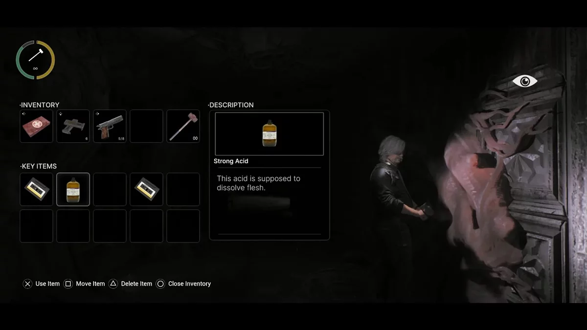 Прибежим к аппарату в лаборатории (Laboratory). Смешав кровь и плоть, изготовим сильную кислоту. Она потребуется у двери напротив архива у коридора в сторону операционной, чтобы открыть проход к выходу. После продолжительной катсцены окажемся на улице, где нужно просто бежать вперед и осматривать окрестности.