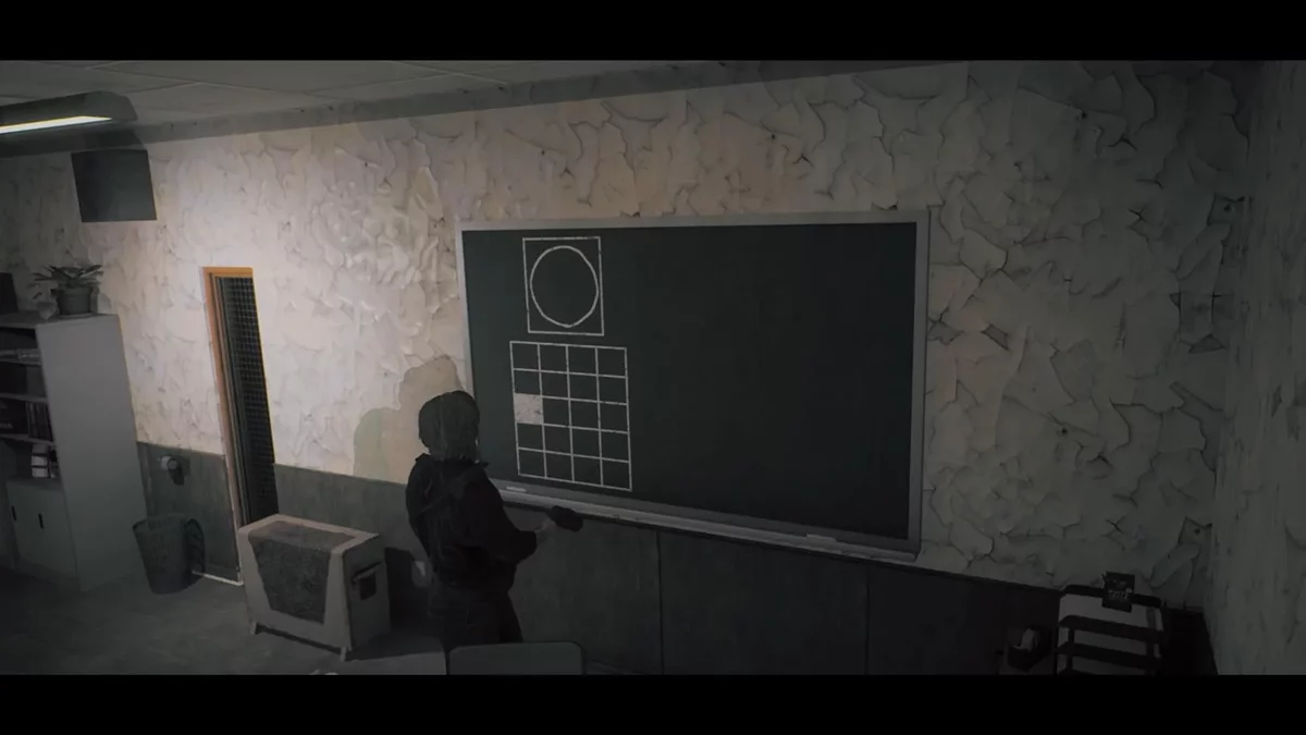 Побежим в соседний длинный коридор, уходящий вглубь: через него можно попасть в класс (Classroom) и кабинет музыки (Music Room). В первом помещении вы увидите системы планет, где отсутствует несколько моделек, а также проектор, транслирующий необычное изображение. Оно понадобится чуть позже.
