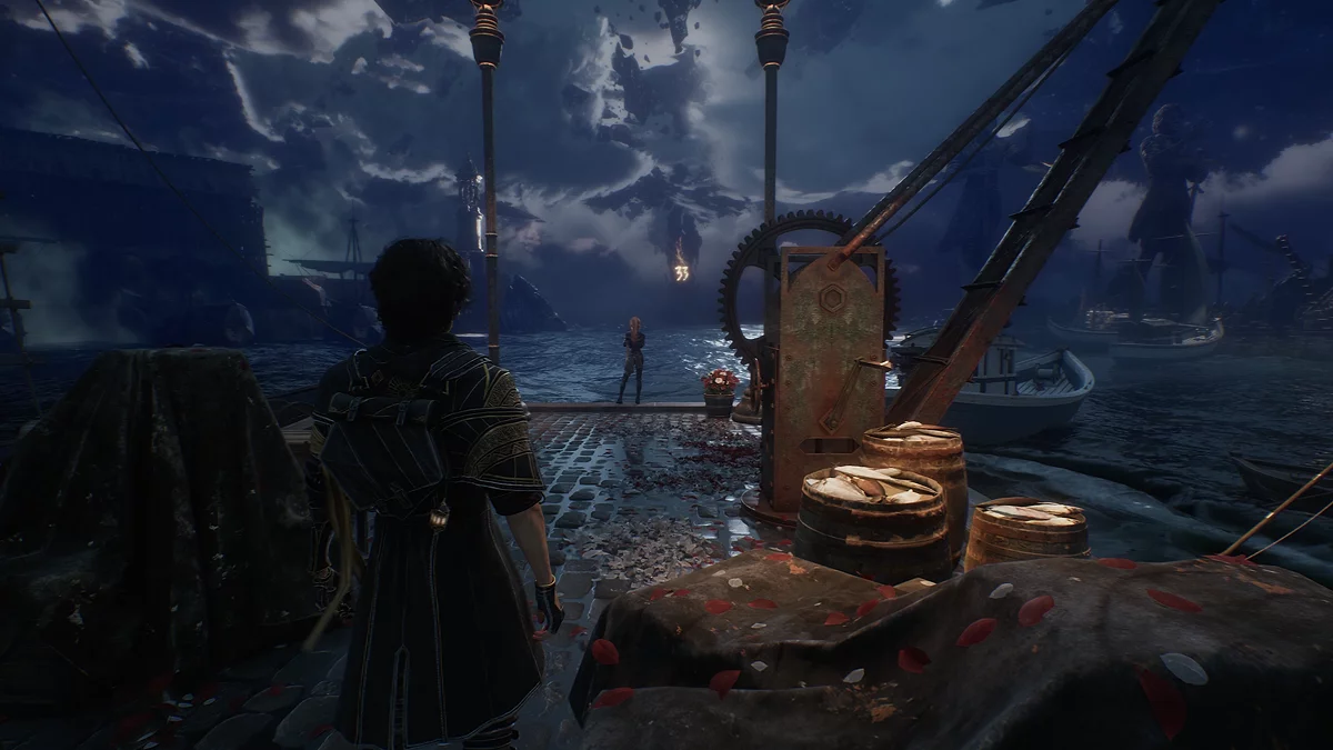 Вернитесь к фонтану и от него идите налево, чтобы собрать хром, и продолжайте движение в гавань. Перед завершением пролога будет предупреждение. Это последний шанс исследовать локацию.