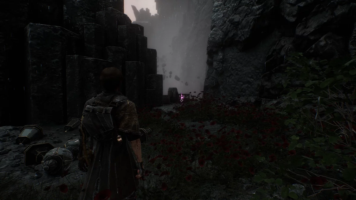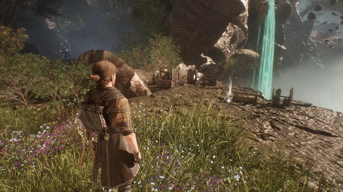 Спуститесь вниз и перебейте всех монстров. После соберите: цвет люмины у первого врага и под мостом, смолу среди бочек. Затем поднимитесь на мост и заберите катализатор хомы. Спуститесь вниз и идите в ущелье, в котором найдете тоник возрождения — используется для воскрешения компаньонов в бою.