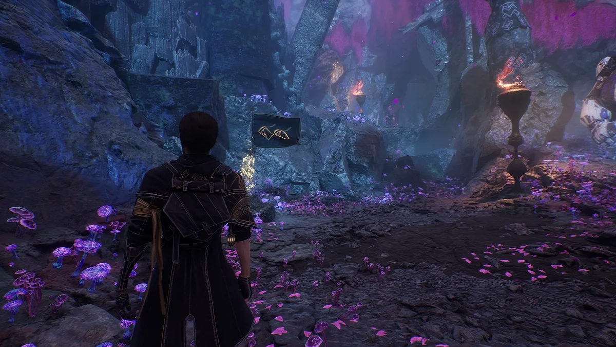 Победите монстров и осмотрите небольшую часть пещеры, чтобы найти цвет люмины, питкос «Награждающая метка»: +2 ОД при нанесении урона цели с наложенной меткой. Один раз за ход. И хром. Затем идите в грот направо.