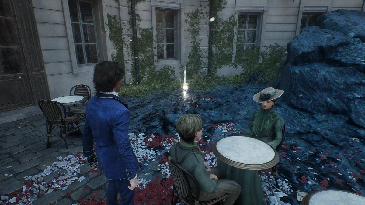 После вступительной кат-сцены, возьмите на лавочке слева от героя цветок для Софи. После встречи с Софией идите по улице направо и рядом с граммофоном соберите сгусток хрома. Хром — это внутриигровая валюта, с помощью которой можно приобретать различные улучшения.